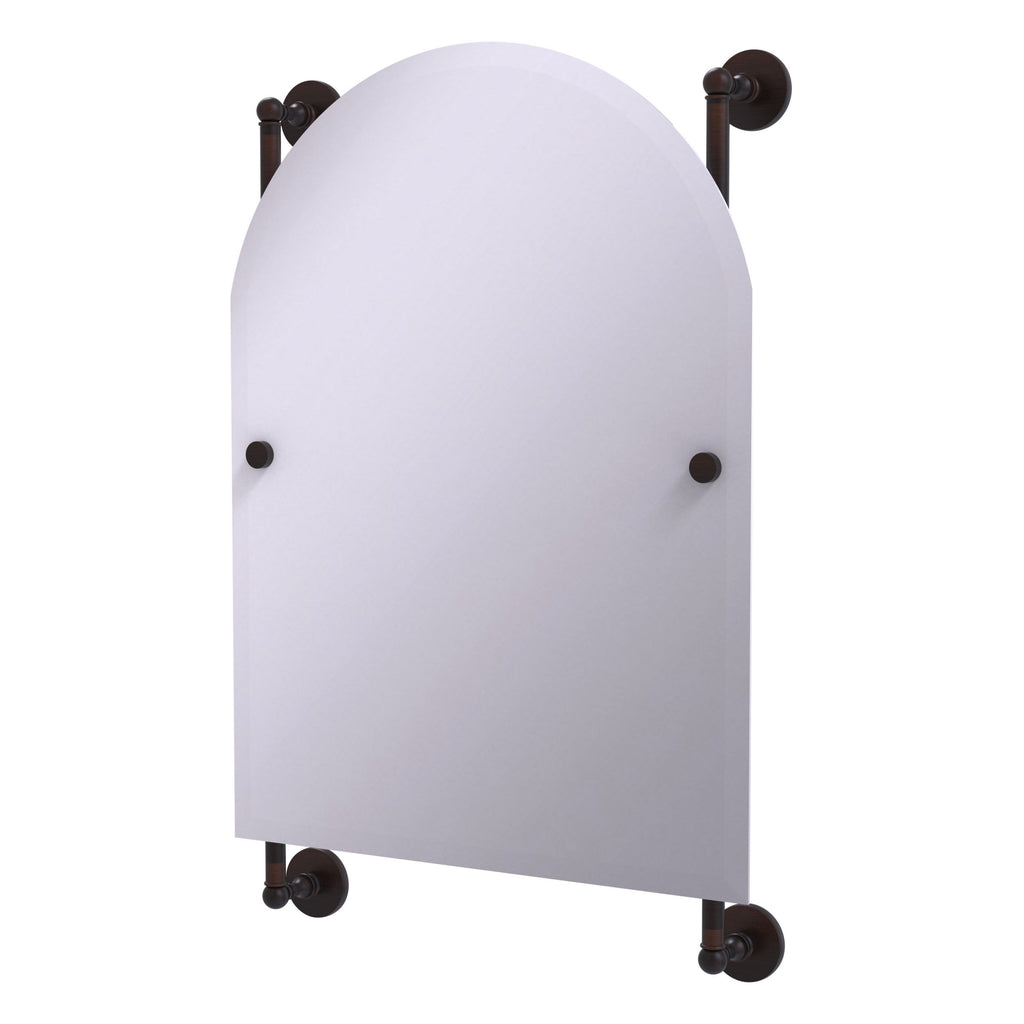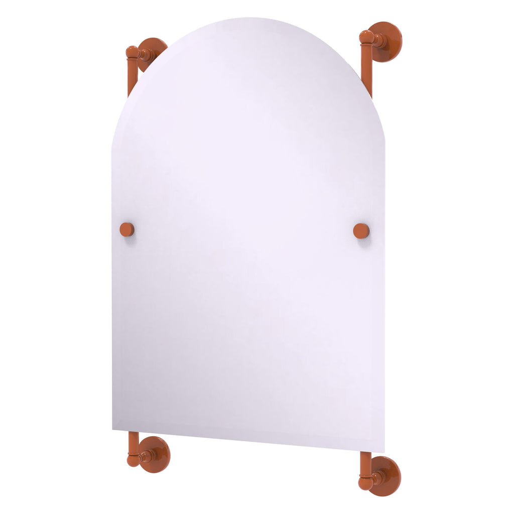 - Frameless 21 x 29 inch arched top mirror with beveled edge