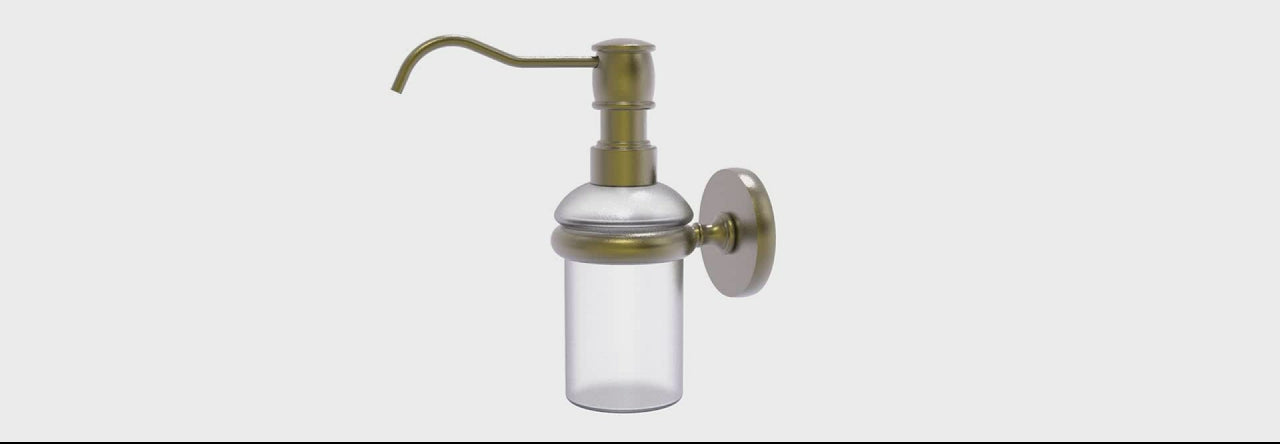 Add a stylish touch to your bathroom with this elegant Wall Mounted Dispenser for Soap, Lotion or Hand Sanitizer. Generous 5 ounce capacity bottle holds plenty of your favorite soap, lotion or hand sanitizer. Made of solid brass and provided with a lifetime finish to insure products will never rust.