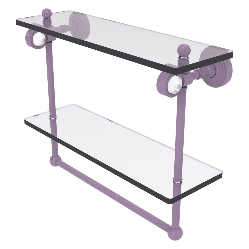 Add a beautiful classic look to your bathroom with this elegant and functional shelf unit. This unique design with acrylic accents will compliment your decor and sure to be a welcomed addition to any bathroom. Having two shelves, it will give you plenty of storage space. The integrated towel bar underneath is a perfect component for hanging hand towels. Made from all solid brass this decorative shelf will provide a lifetime of use.