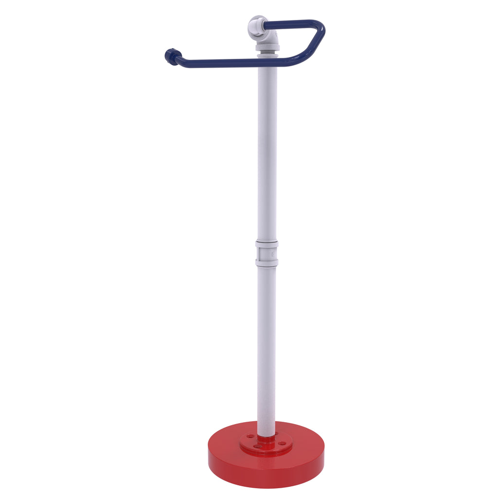 This unique free-standing toilet paper holder is a perfect blend of rustic charm, modern design, and European flair. Made from high-quality industrial pipe fittings, it's both sturdy and stylish. The vibrant red, white, and blue color scheme adds a patriotic touch to your bathroom. The freestanding design adds flexibility to your bathroom layout, while the industrial pipe accents add a touch of rugged elegance. The Euro-style toilet paper holder brings a touch of sophistication to your bathroom décor. Built to last, this toilet paper holder is a must-have for any home.