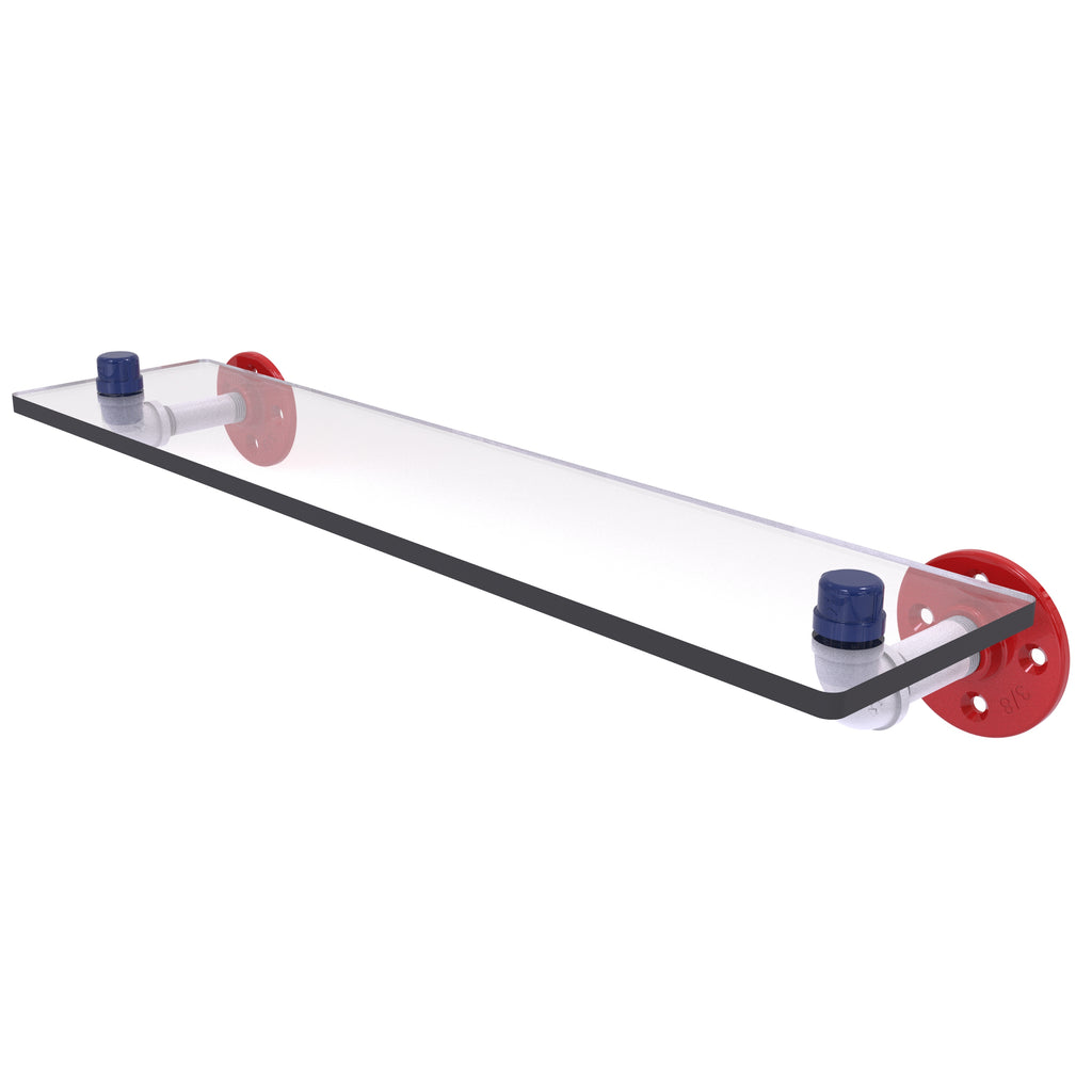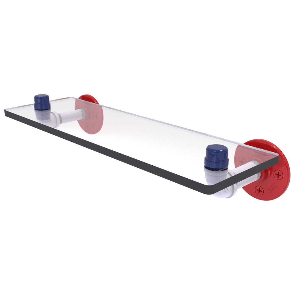 Add functional elegance to your space with the Wall Mounted Glass Shelf from the Patriotic Pipeline Collection. Featuring a sleek thick glass surface supported by industrial pipe fittings, this shelf combines bold red, white, and blue accents with rugged durability. Perfect for bathrooms, kitchens, or living areas, it provides a stylish solution for displaying or organizing your essentials.