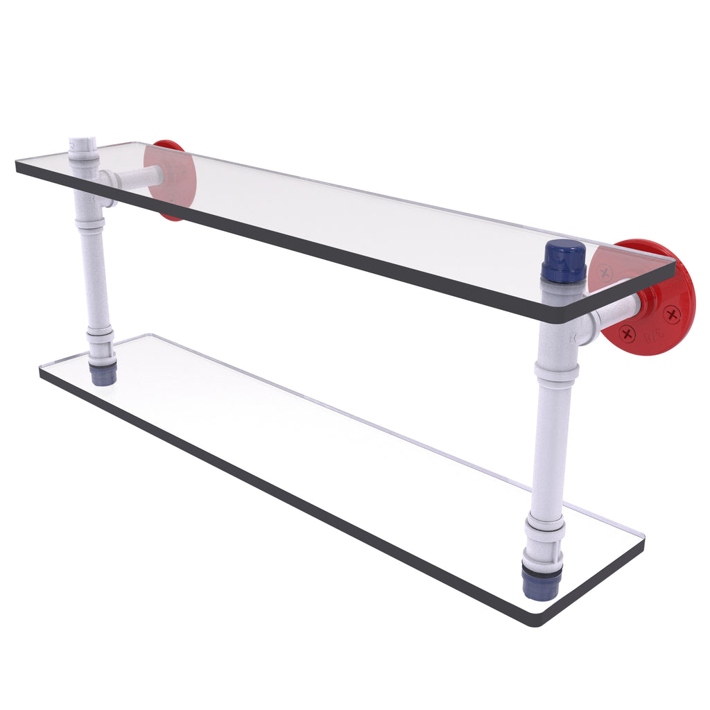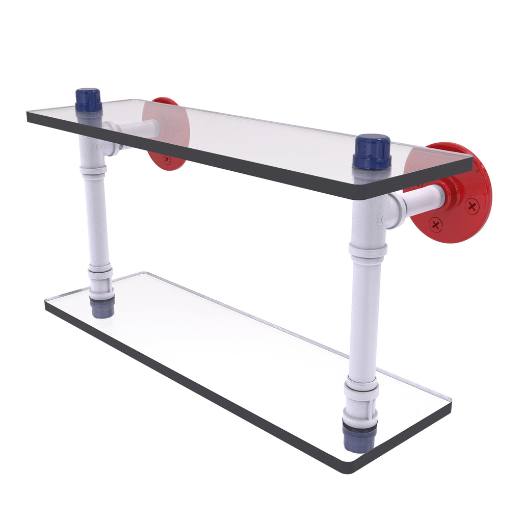 The Double Glass Shelf brings a perfect balance of practicality and bold design to your home. With two durable glass shelves and a rugged industrial pipe fitting frame, this wall-mounted shelf provides extra storage while making a patriotic statement with its vibrant red, white, and blue finish. Ideal for modern bathrooms or kitchens, it’s a functional and decorative addition to any room.