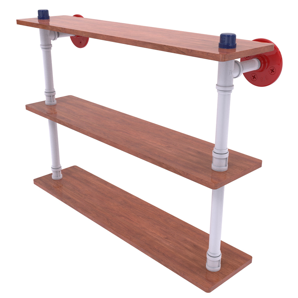 Maximize your storage with the Triple Wood Shelf from the Patriotic Pipeline Collection. Featuring three spacious wooden shelves supported by rugged industrial pipe fittings, this wall-mounted design provides ample storage while showcasing bold red, white, and blue accents. Perfect for bathrooms, kitchens, or living areas, it combines rustic charm with modern utility.