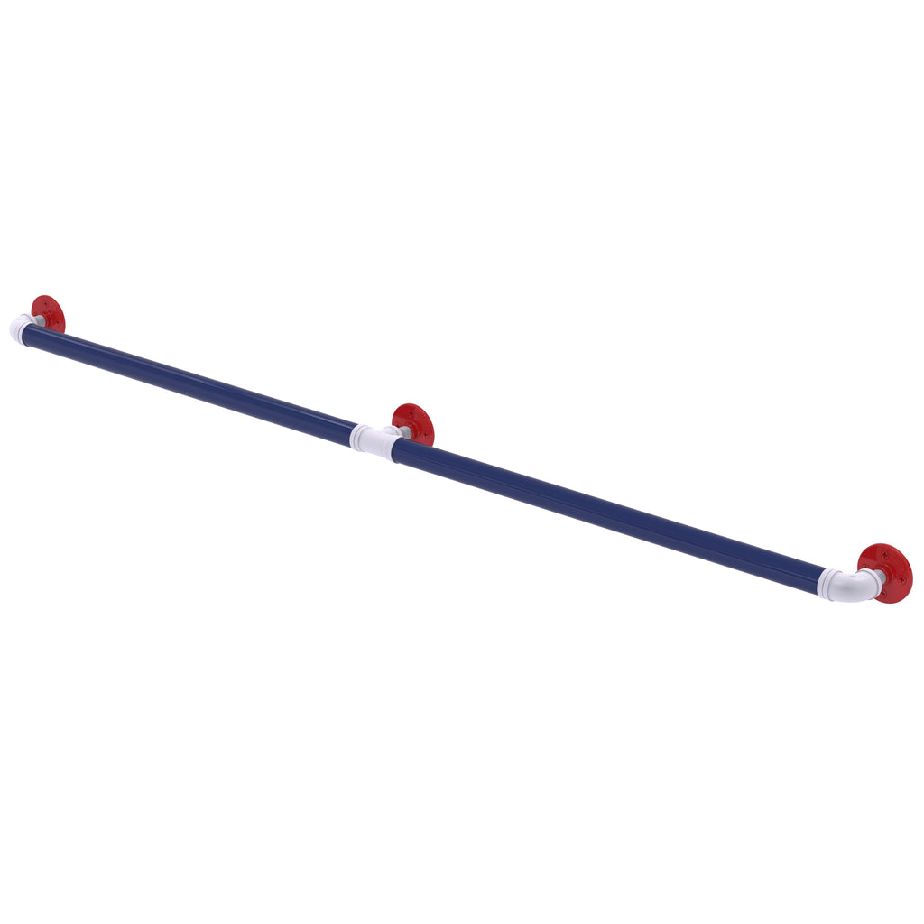 The Extended Wall Mounted 3 Post Grab Bar from the Patriotic Pipeline Collection offers enhanced support and style. Featuring an extended design with three secure posts, this grab bar ensures reliable safety in larger spaces. The bold red, white, and blue accents, combined with industrial-grade pipe fittings, make it a practical yet decorative addition to your home. Fully ADA compliant for accessibility and peace of mind.