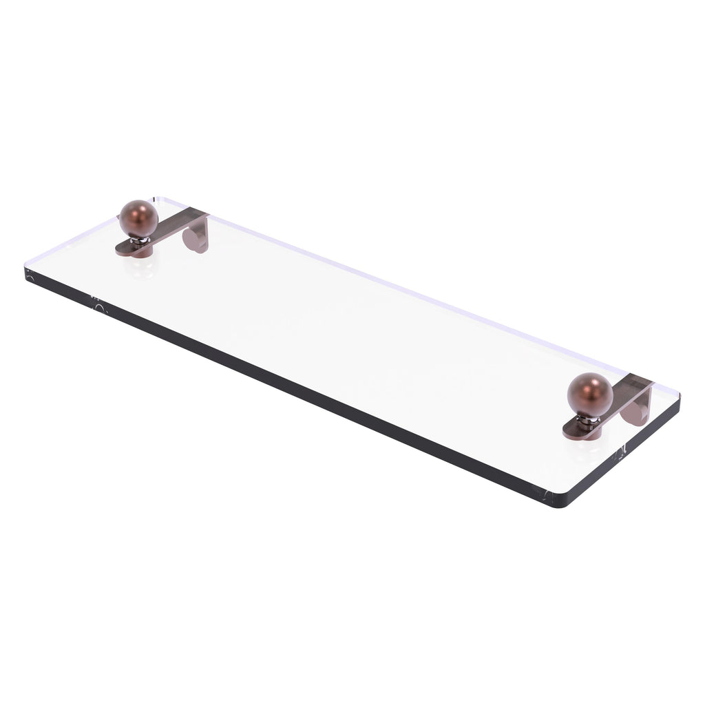 Add space and organization to your bathroom with this simple, traditional style glass shelf. Featuring tempered, beveled-edged glass and solid brass hardware this shelf is crafted for durability, strength and style. One of the many coordinating accessories in the Allied Brass Collection of accessories, this subtle glass shelf is the perfect complement to your bathroom decor.