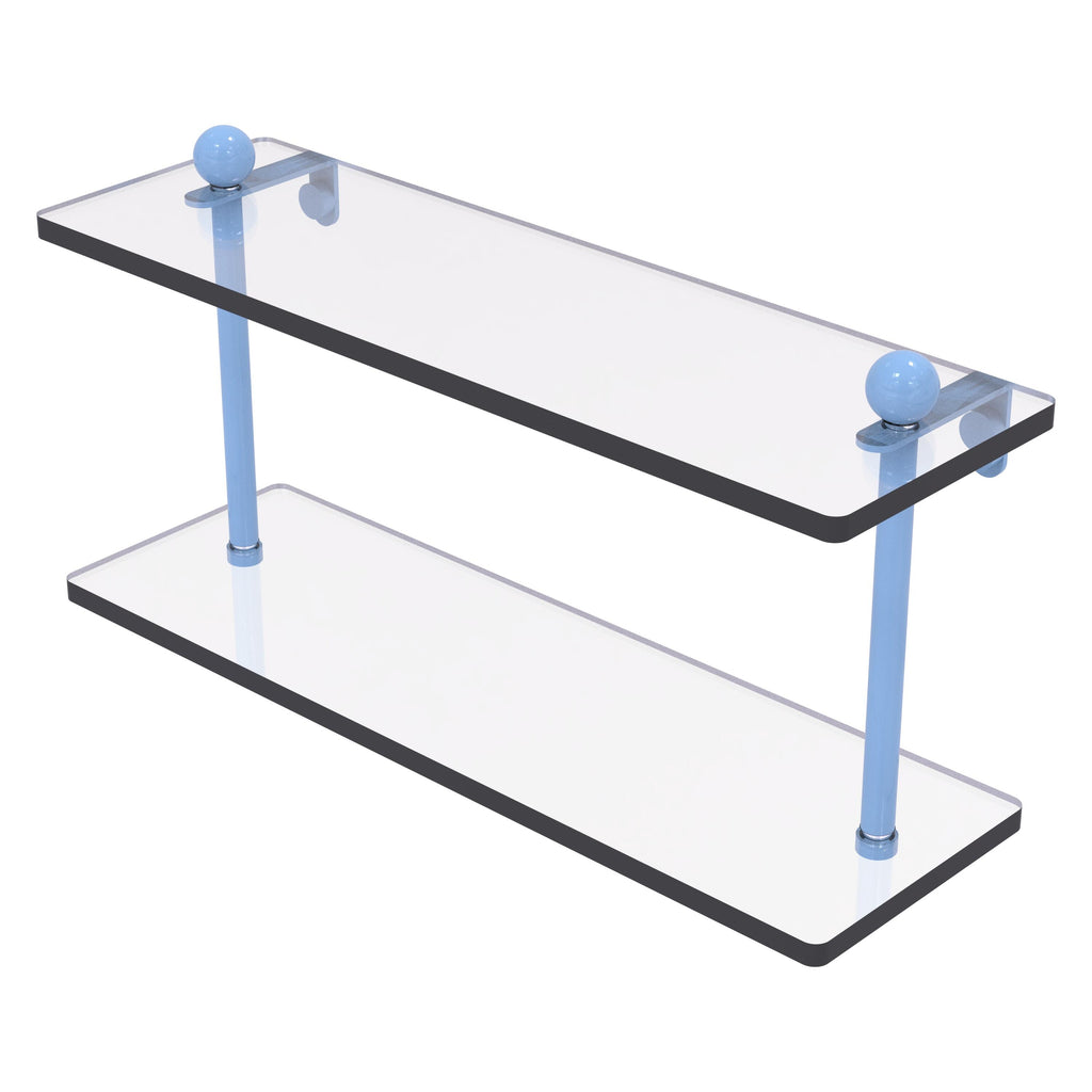 Add space and organization to your bathroom with this simple, contemporary design 2-tier glass vanity shelf. Featuring tempered, beveled-edged glass and solid brass hardware this shelving unit is crafted for durability, strength and style. One of the many coordinating accessories in the Allied Brass collection of products, this subtle glass shelf unit is the perfect complement to your bathroom decor.