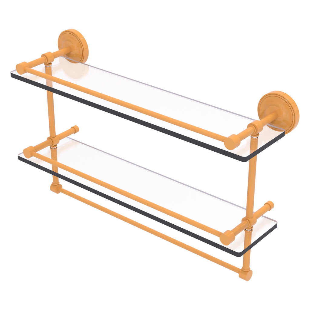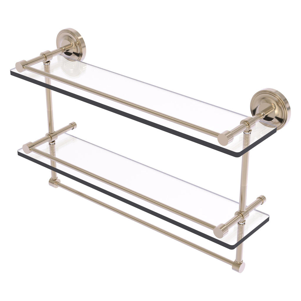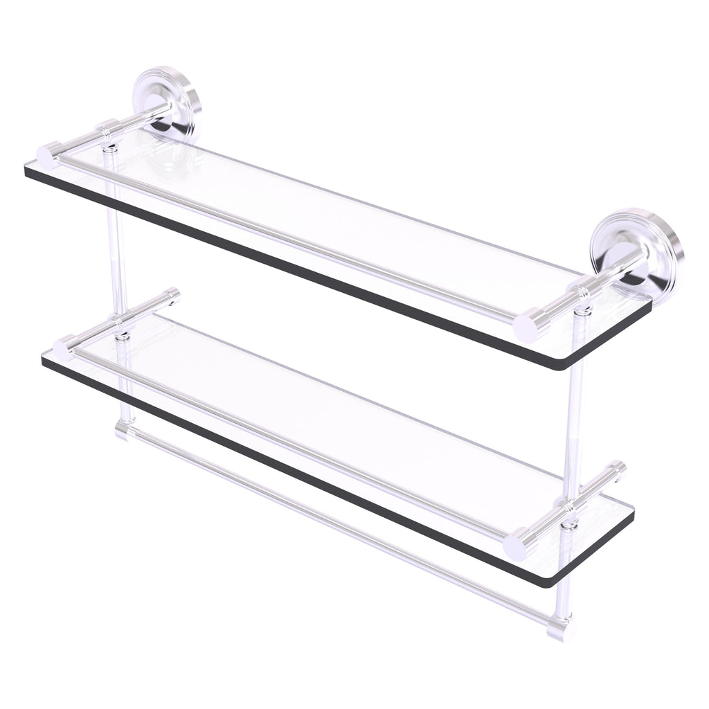 Add a flare of style to your décor with this decorative glass shelf. Shelf can be used anywhere in the home for a great space to store your products. Gallery rail will keep your items secure while the integrated towel bar provides a creative space for your towels. Tempered glass is 3/8 Inches thick and all of the hardware is made of solid brass and finished with the highest quality materials to provide a lifetime of beauty.