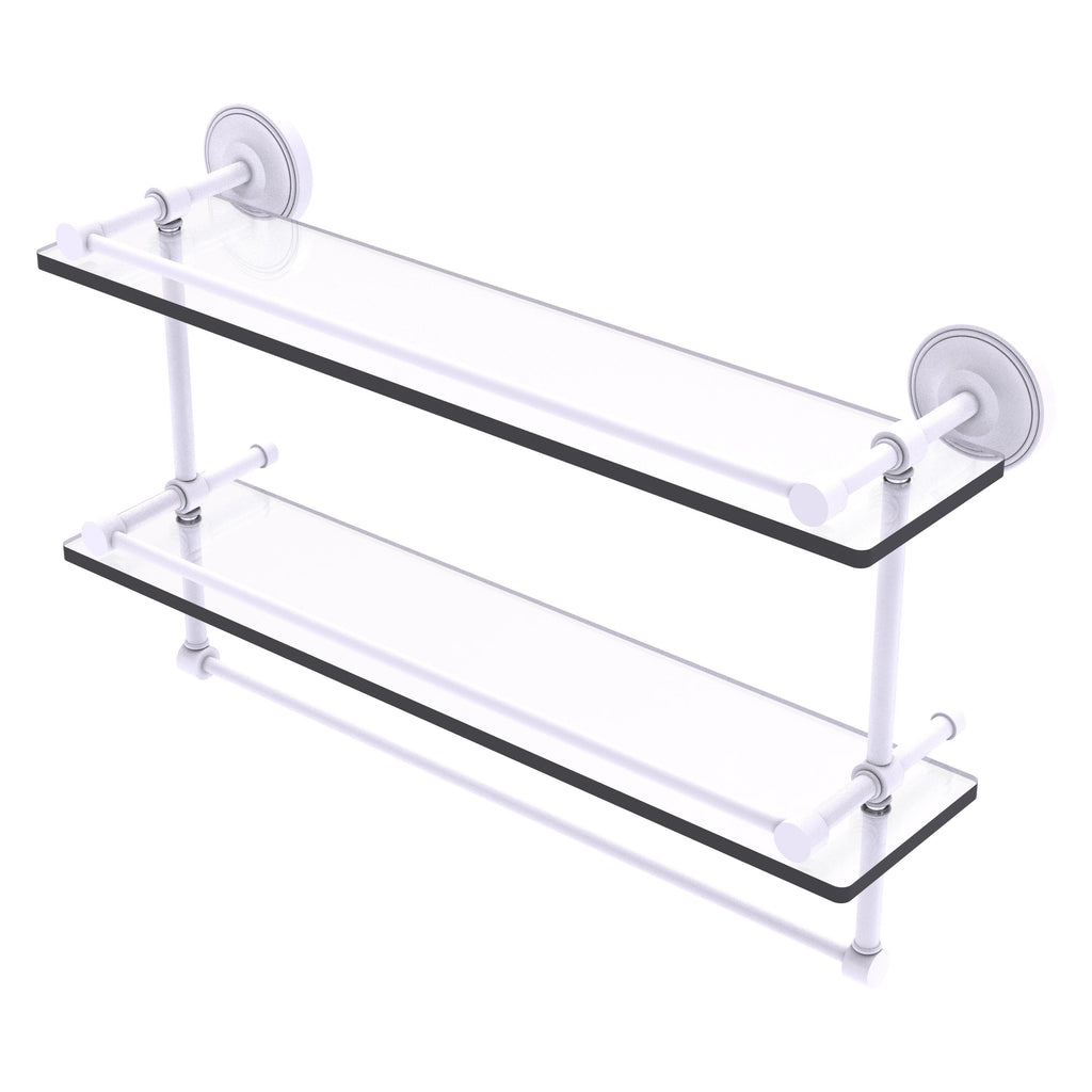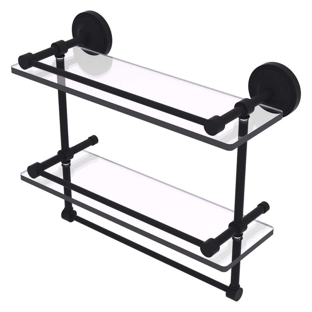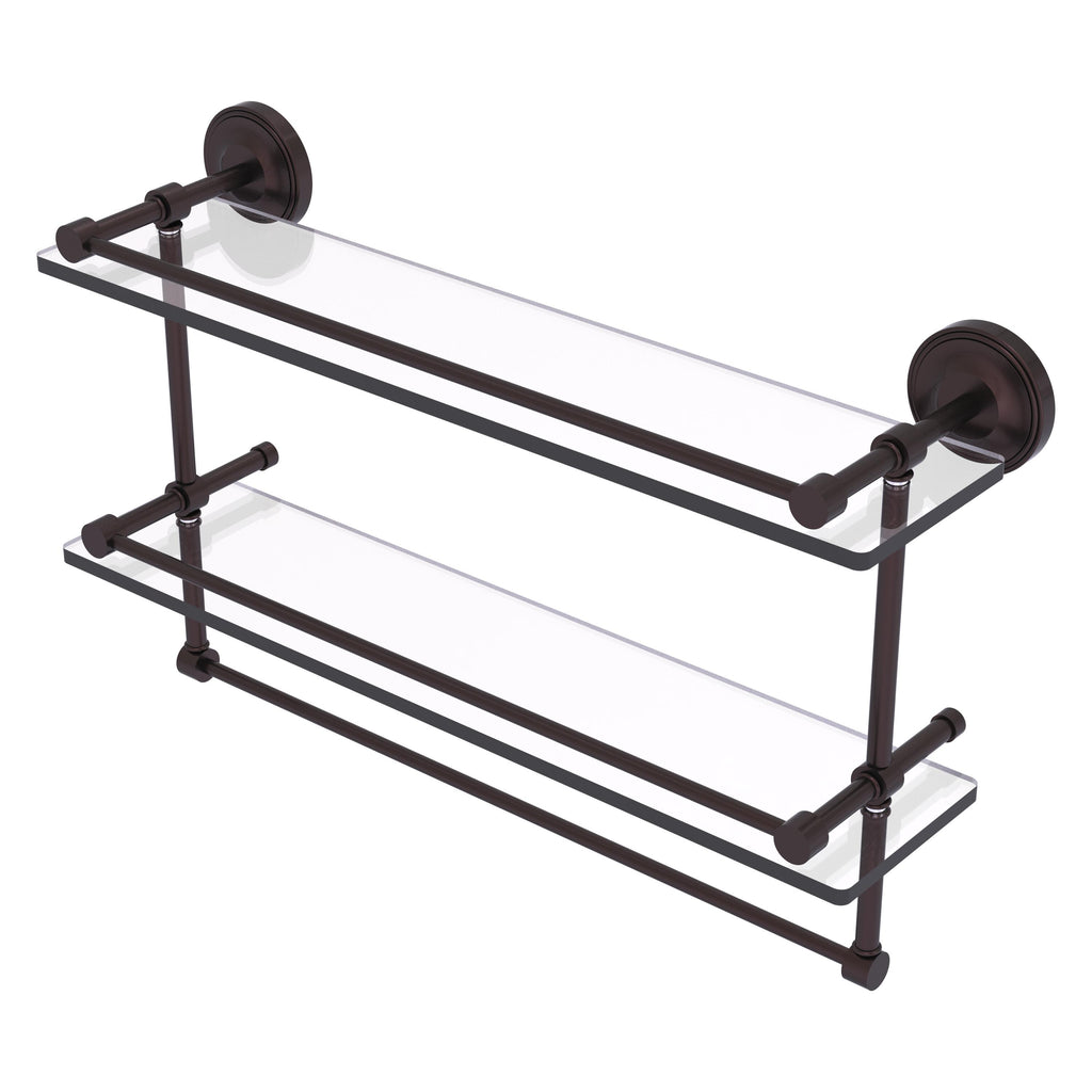 Add a flare of style to your décor with this decorative glass shelf. Shelf can be used anywhere in the home for a great space to store your products. Gallery rail will keep your items secure while the integrated towel bar provides a creative space for your towels. Tempered glass is 3/8 Inches thick and all of the hardware is made of solid brass and finished with the highest quality materials to provide a lifetime of beauty.