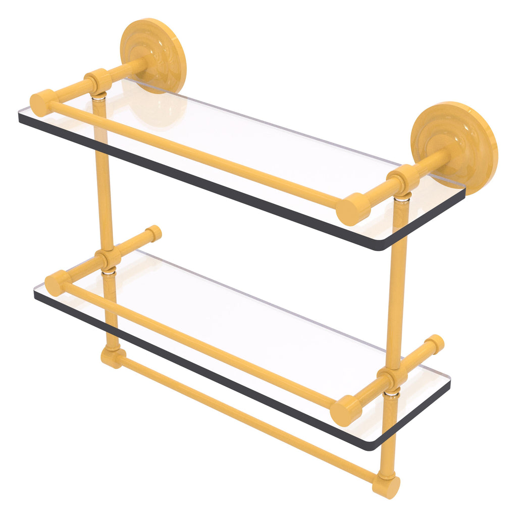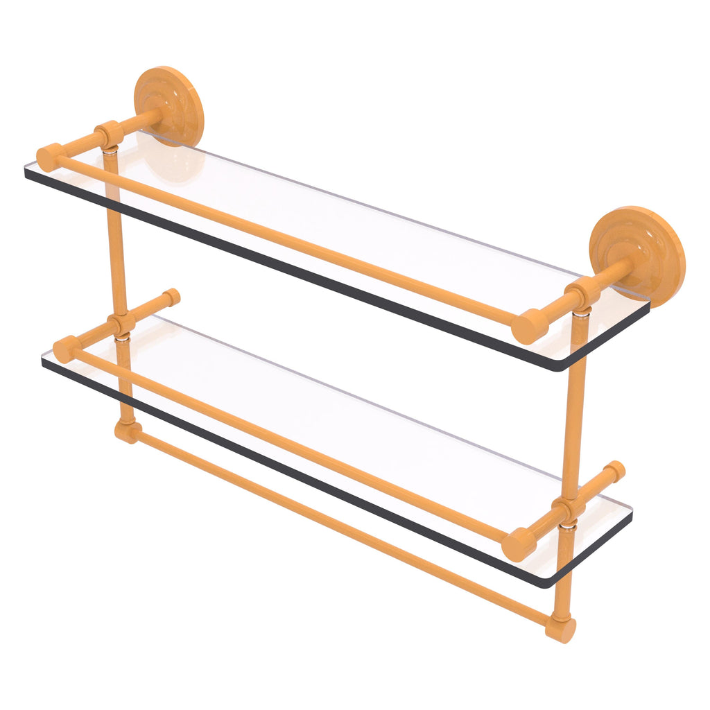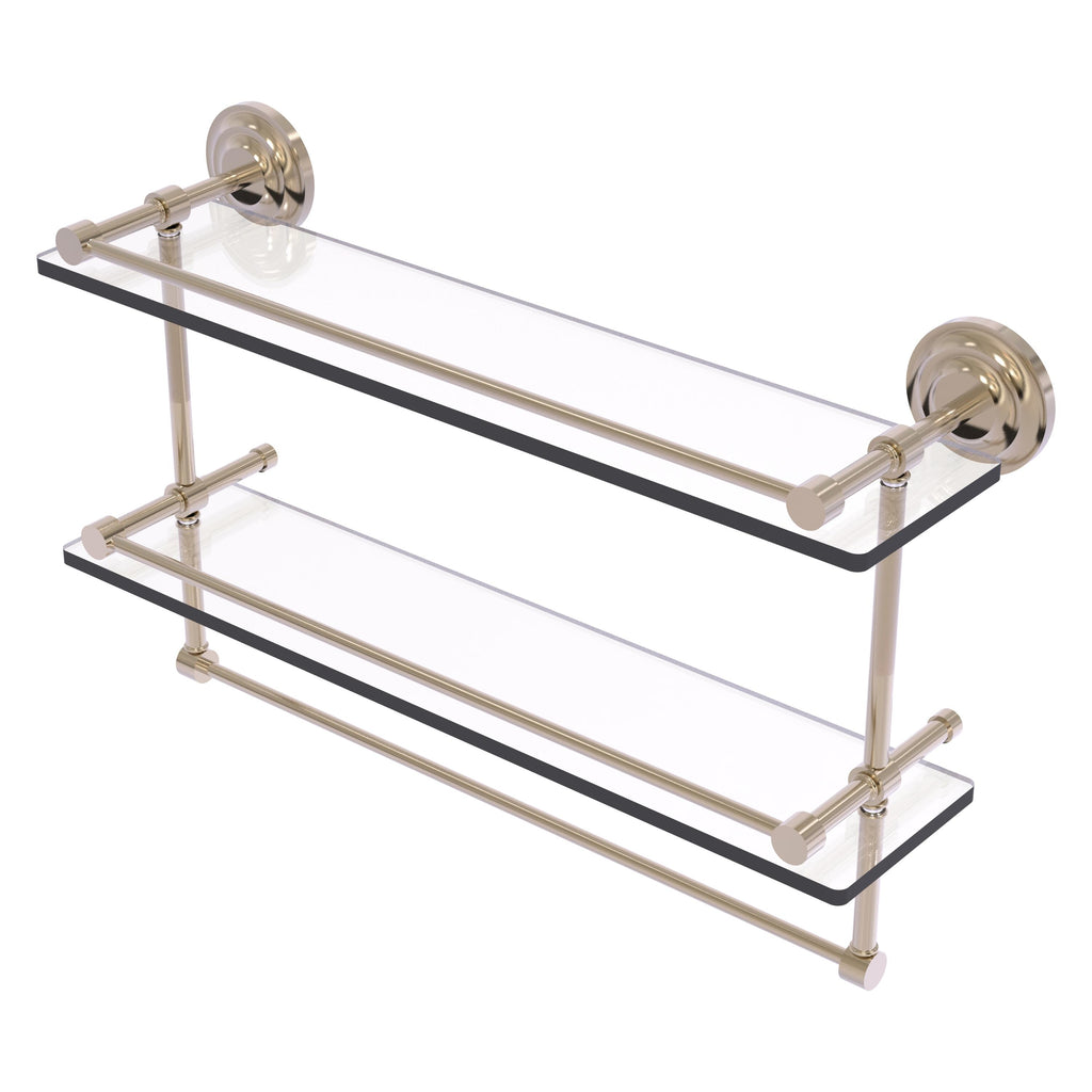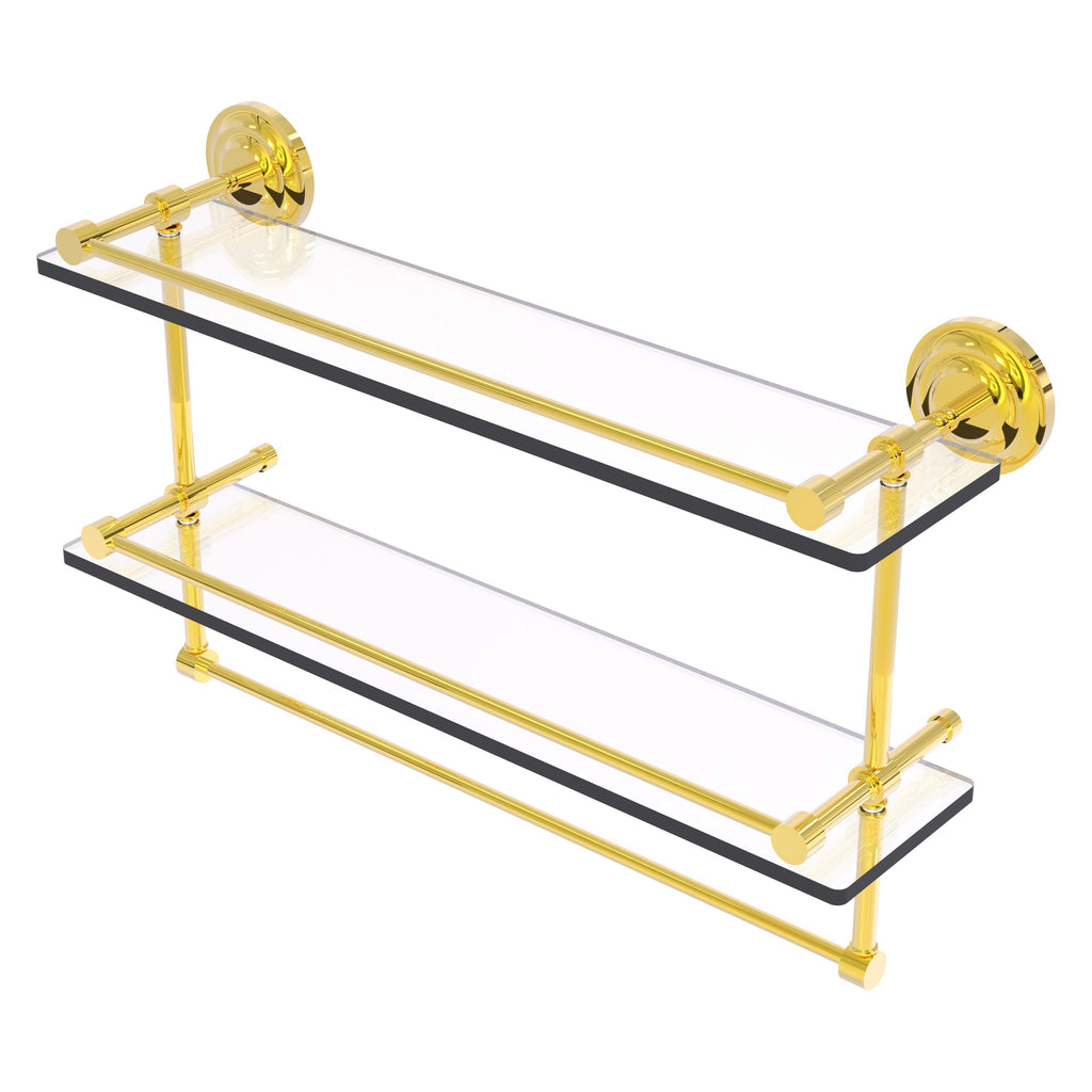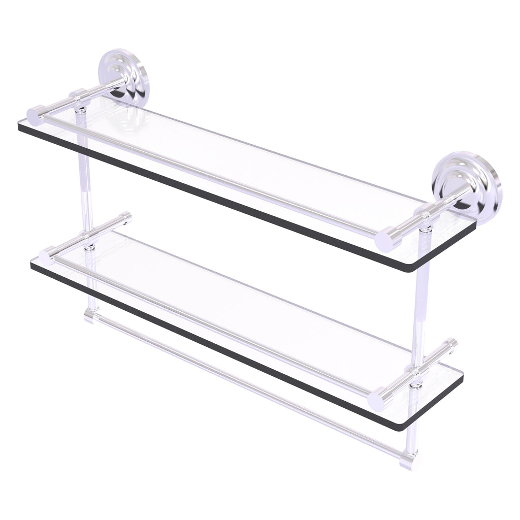 Add a flare of style to your décor with this decorative glass shelf. Shelf can be used anywhere in the home for a great space to store your products. Gallery rail will keep your items secure while the integrated towel bar provides a creative space for your towels. Tempered glass is 3/8 Inches thick and all of the hardware is made of solid brass and finished with the highest quality materials to provide a lifetime of beauty.
