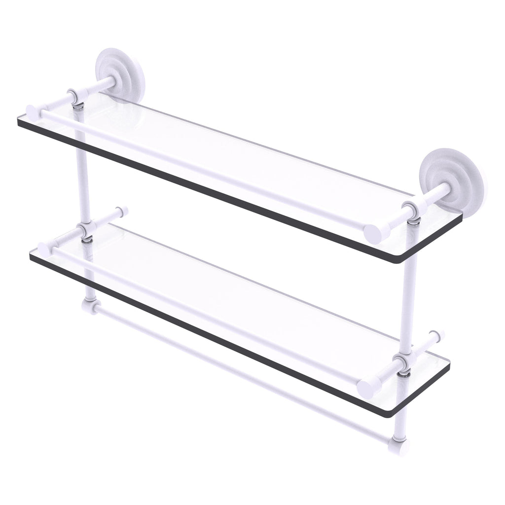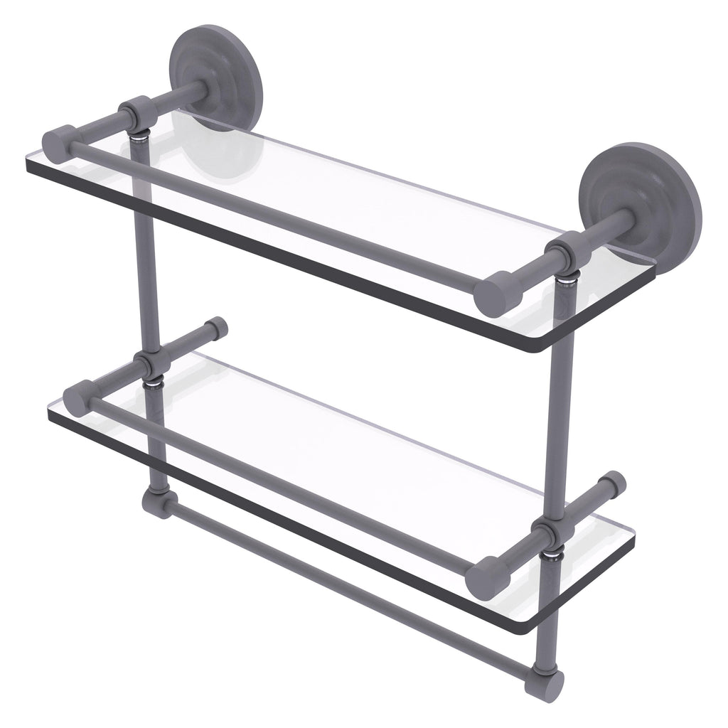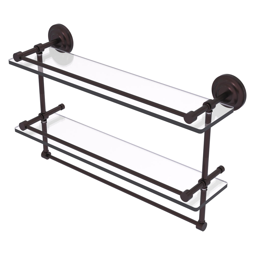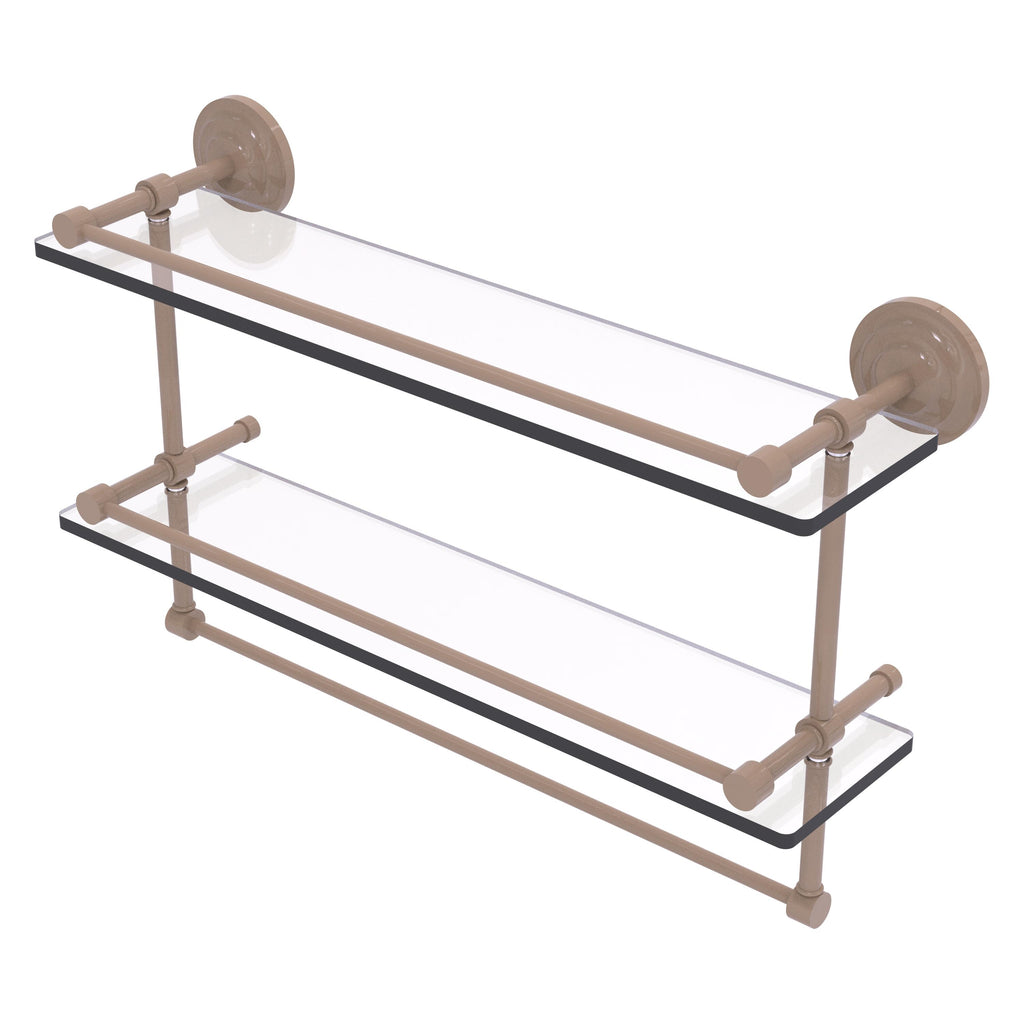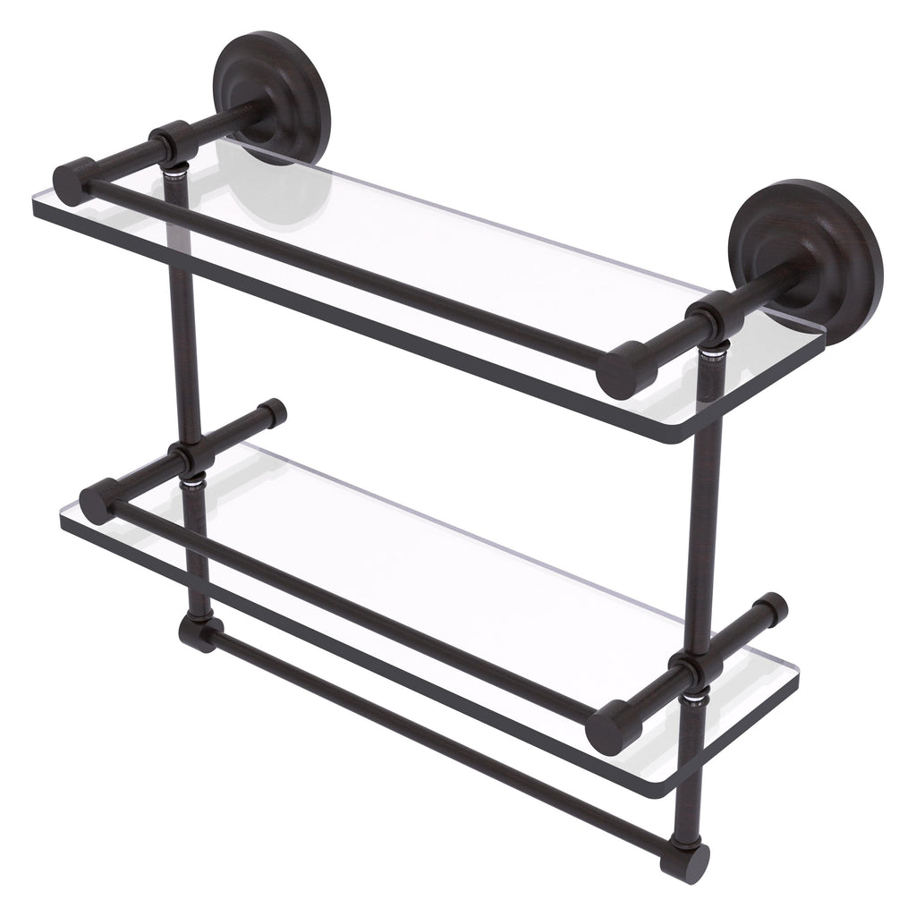 Add a flare of style to your décor with this decorative glass shelf. Shelf can be used anywhere in the home for a great space to store your products. Gallery rail will keep your items secure while the integrated towel bar provides a creative space for your towels. Tempered glass is 3/8 Inches thick and all of the hardware is made of solid brass and finished with the highest quality materials to provide a lifetime of beauty.