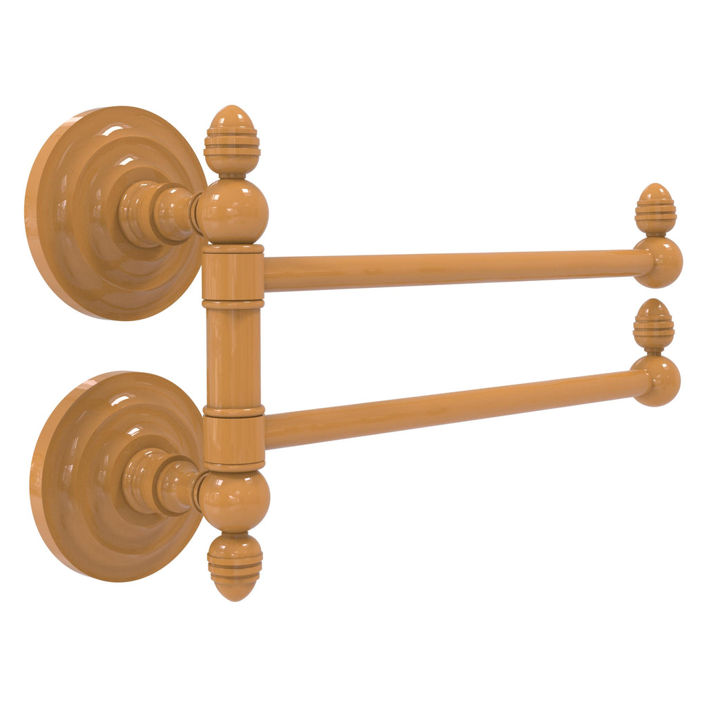 Designed with multi-use and modernity in mind, this space saving double arm towel bar is an ideal addition for your bathroom and/or kitchen. Each arm swivels independently and snuggles close to the wall when not in use - excellent to keep your bathroom and/or kitchen organized!