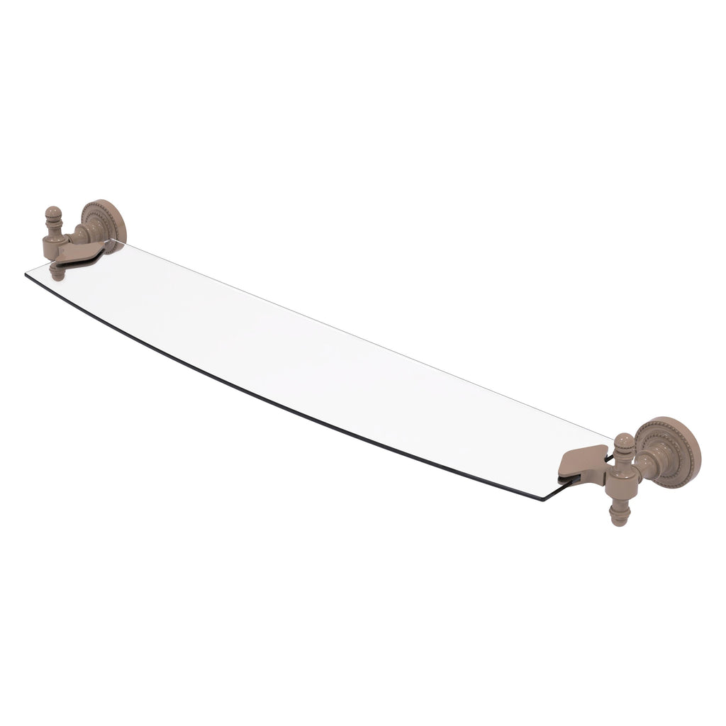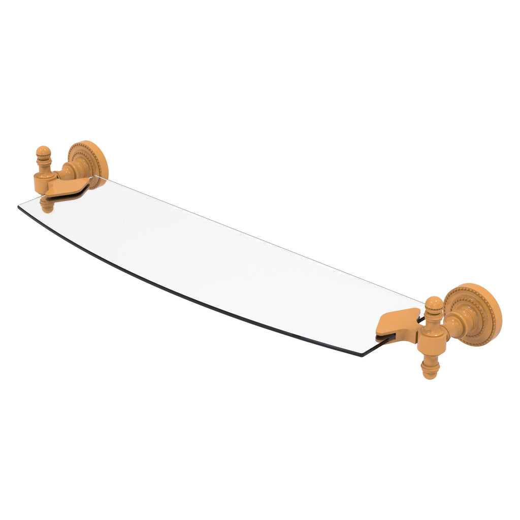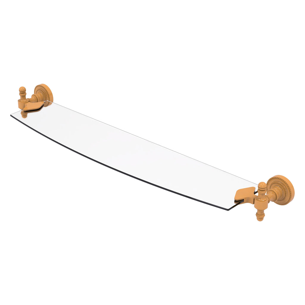 Add a flare of style to your décor with this decorative glass shelf. Shelf can be used anywhere in the home for a great space to store your products. Glass is 1/4 Inch thick and all of the hardware is made of solid brass and finished with the highest quality materials to provide a lifetime of beauty.