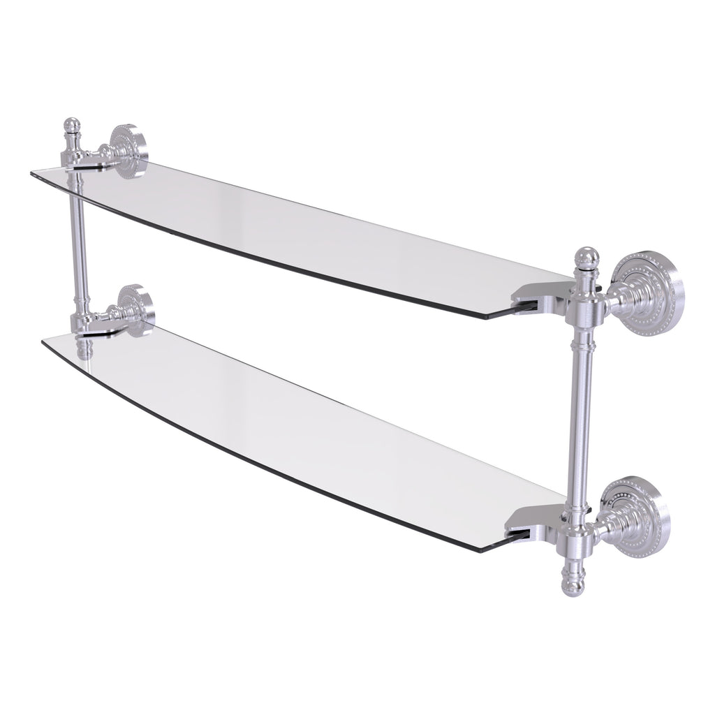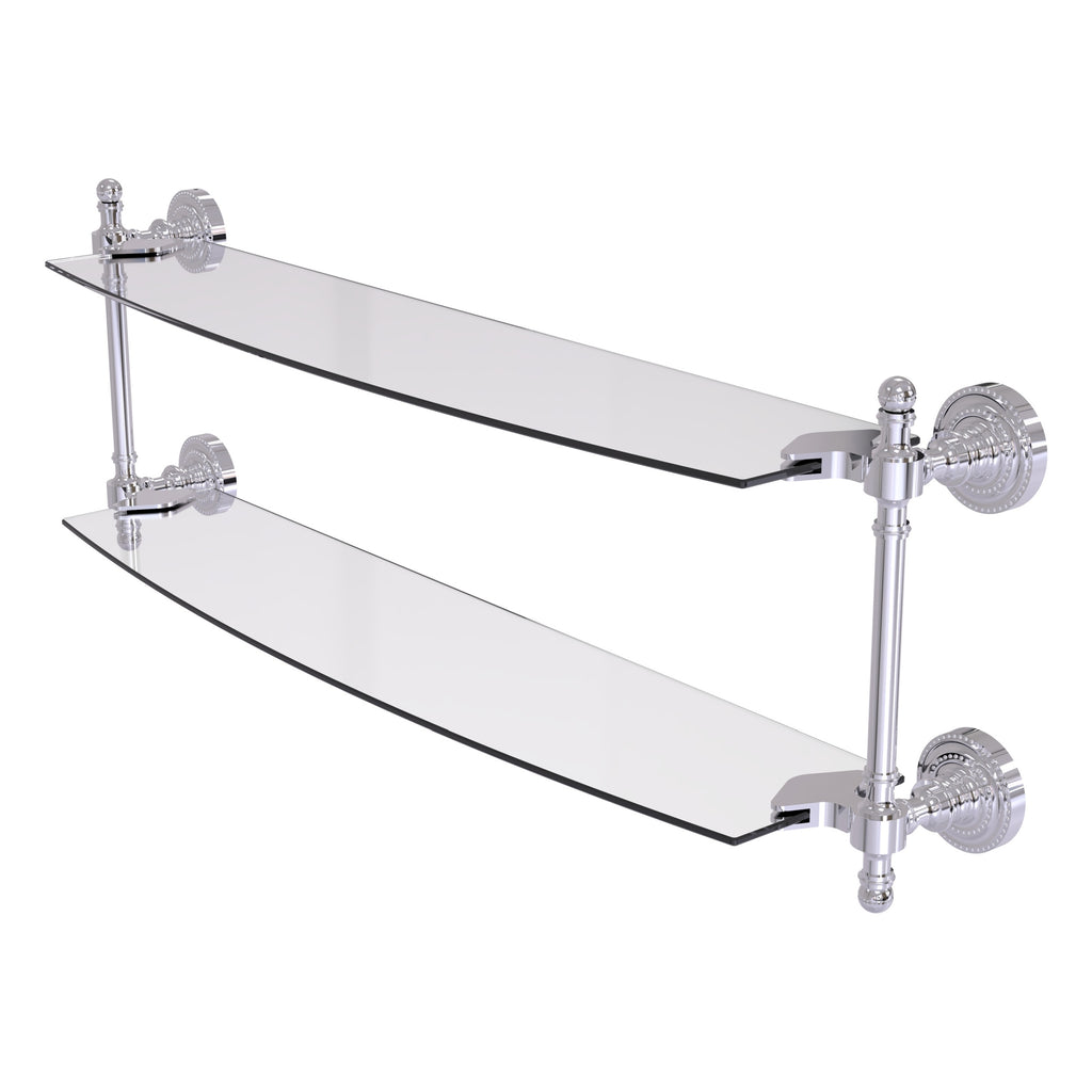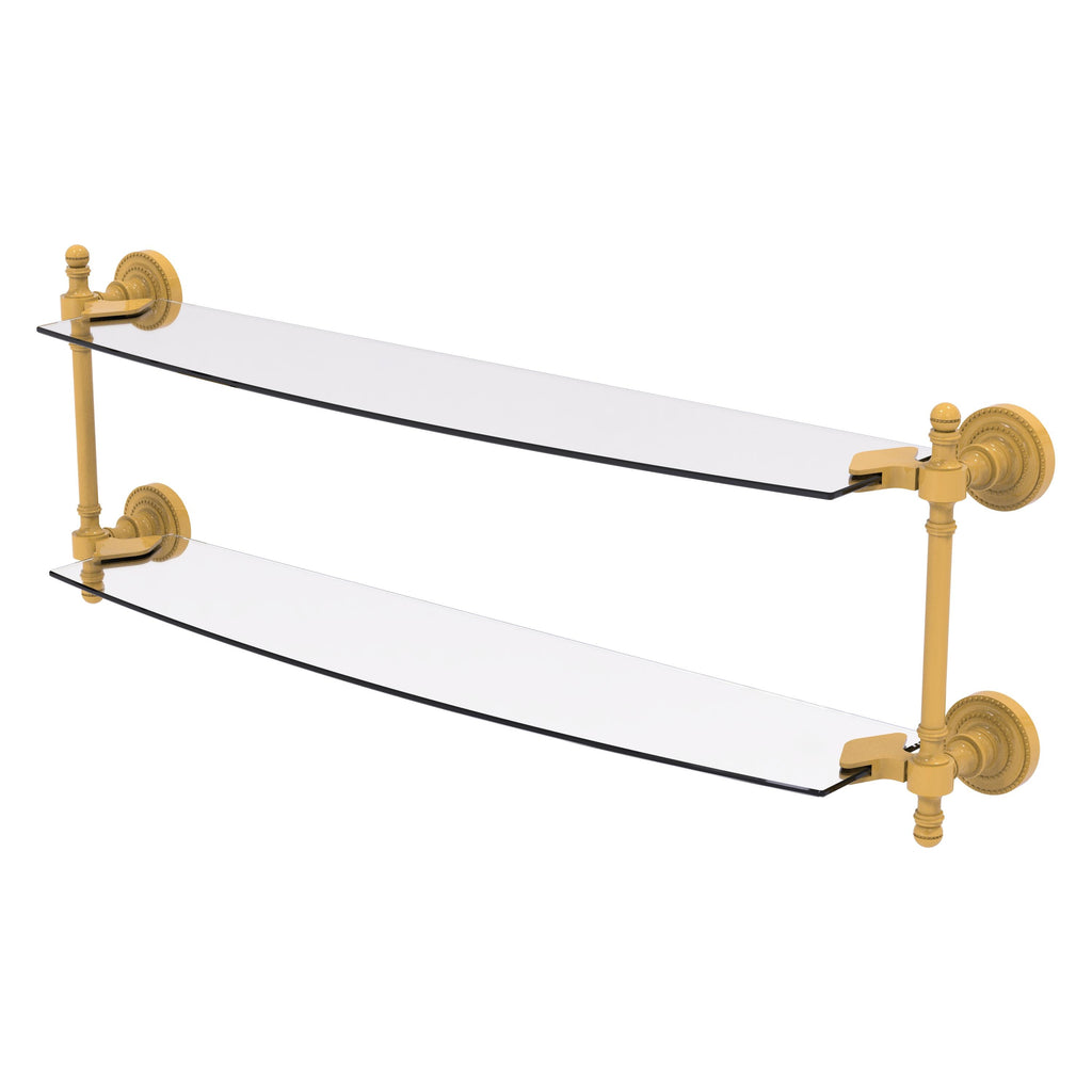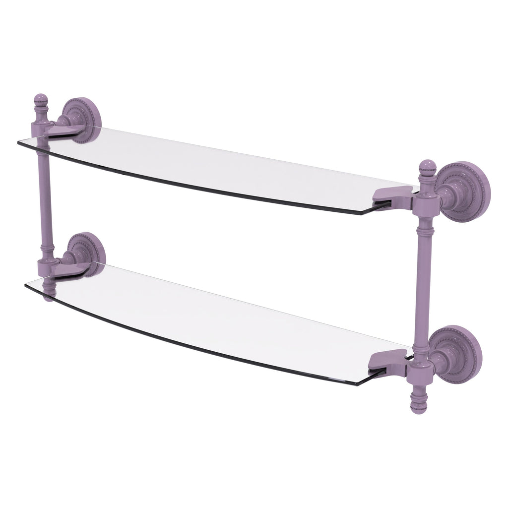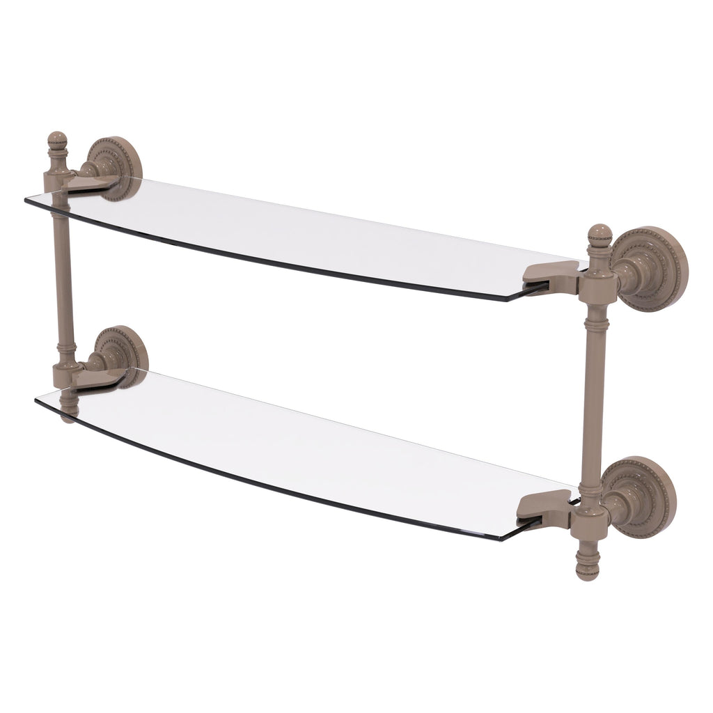 Add space and organization to your bathroom with this simple, contemporary style glass shelf. Featuring tempered, beveled-edged glass and solid brass hardware this shelf is crafted for durability, strength and style. One of the many coordinating accessories in the Allied Brass Collection of products, this subtle glass shelf is the perfect complement to your bathroom decor.