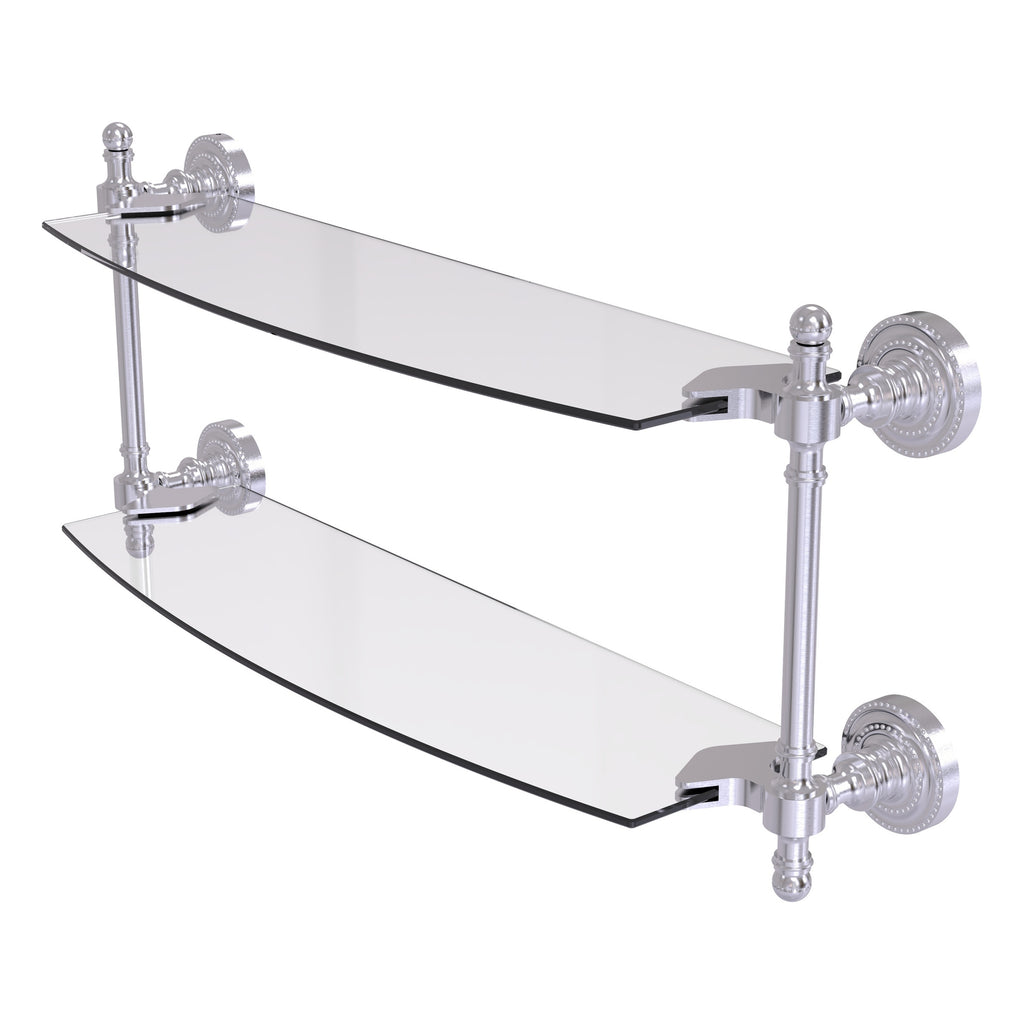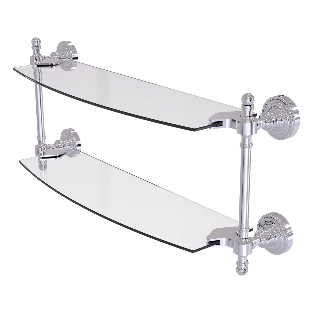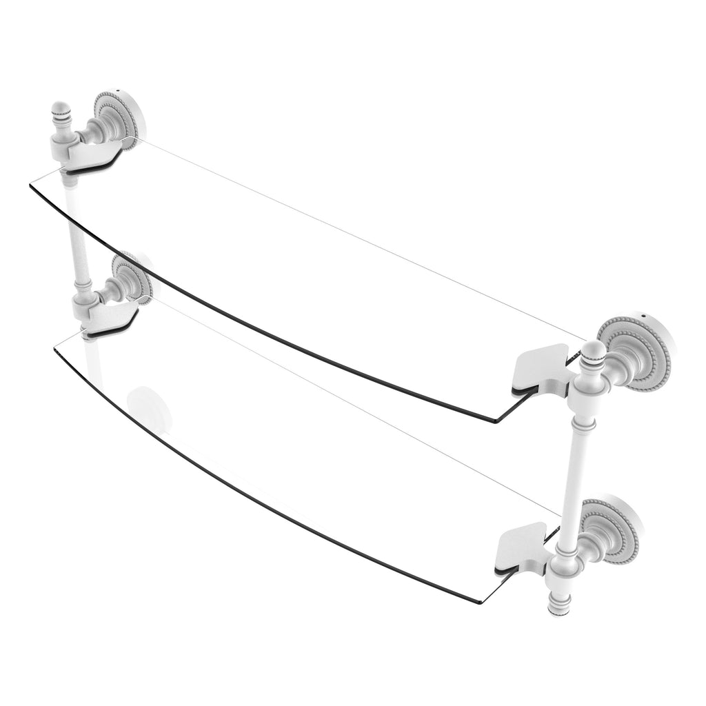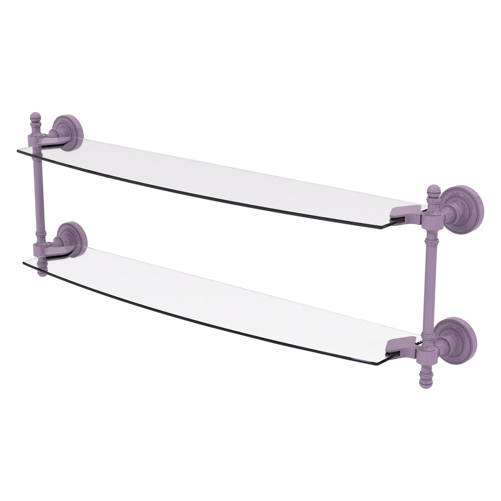 Add space and organization to your bathroom with this simple, contemporary style glass shelf. Featuring tempered, beveled-edged glass and solid brass hardware this shelf is crafted for durability, strength and style. One of the many coordinating accessories in the Allied Brass Collection of products, this subtle glass shelf is the perfect complement to your bathroom decor.
