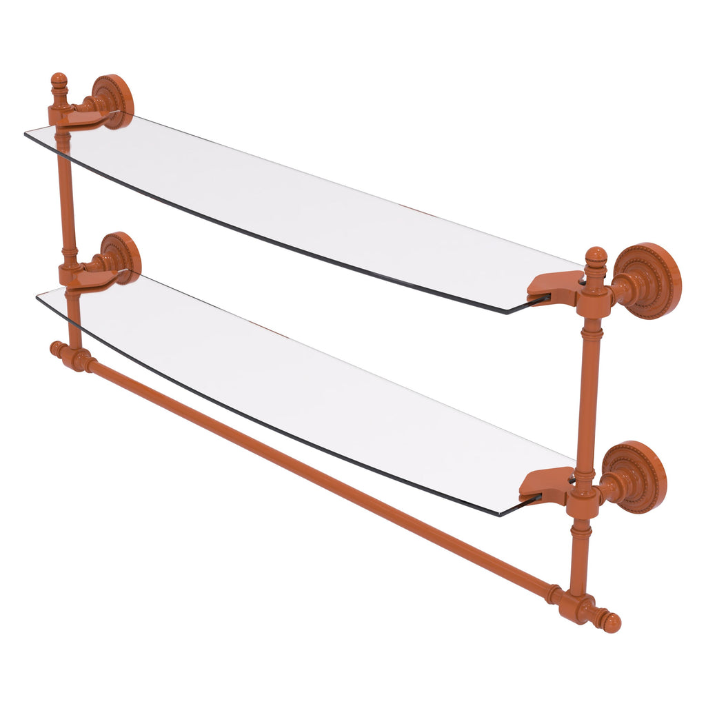 Retro Dot Collection Two Tiered Glass Shelf with Integrated Towel Bar