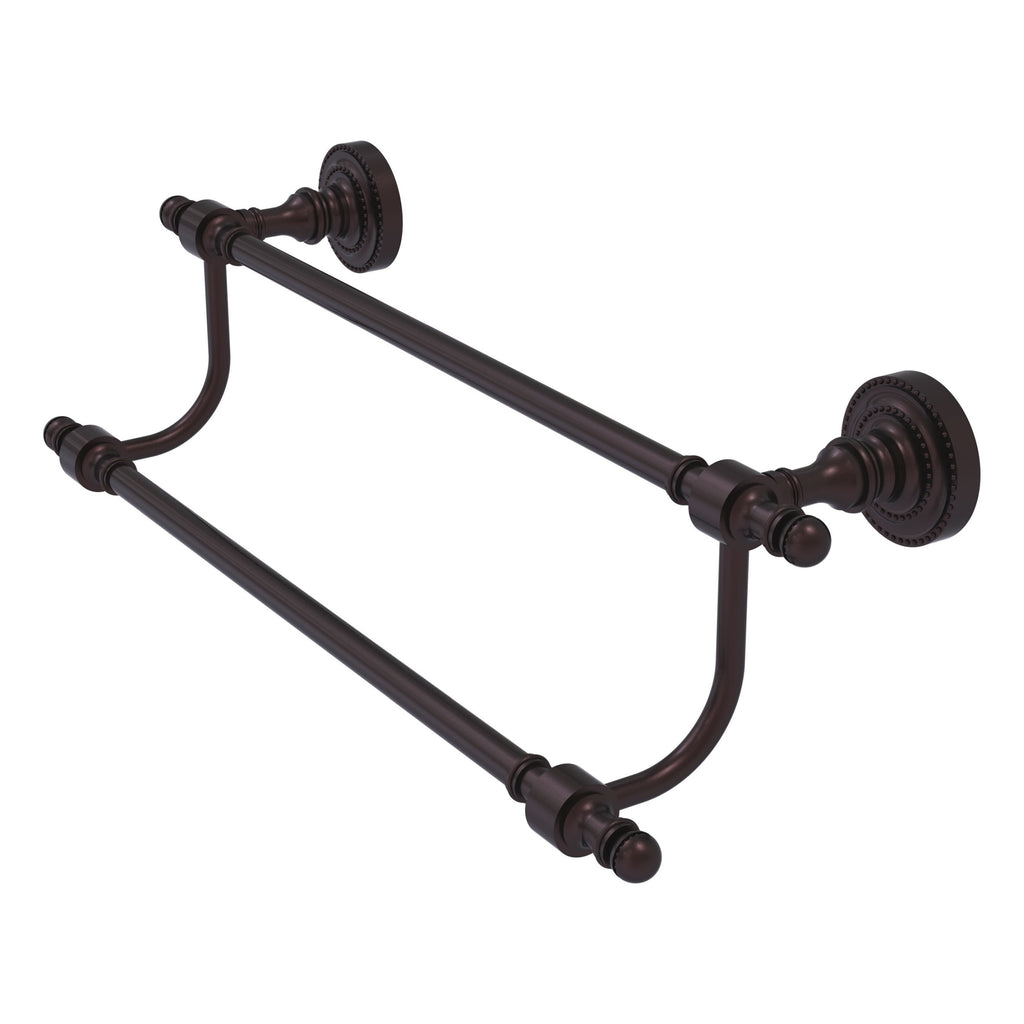 Add a stylish touch to your bathroom decor with this finely crafted double towel bar. This elegant bathroom accessory is created from the finest solid brass materials. High quality lifetime designer finishes are hand polished to perfection.