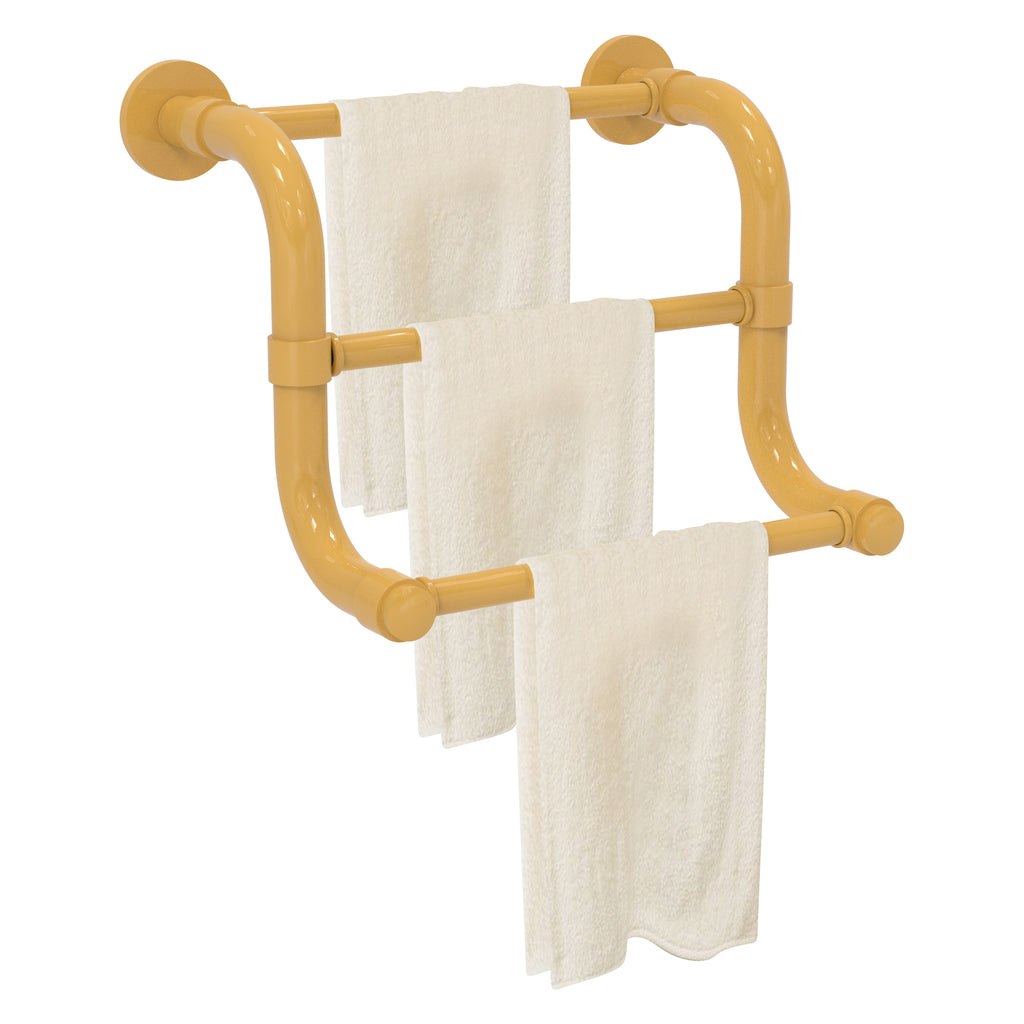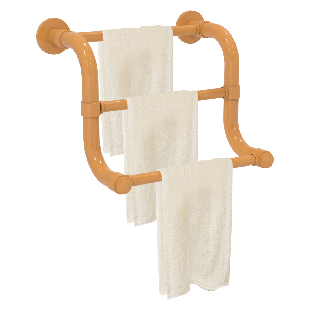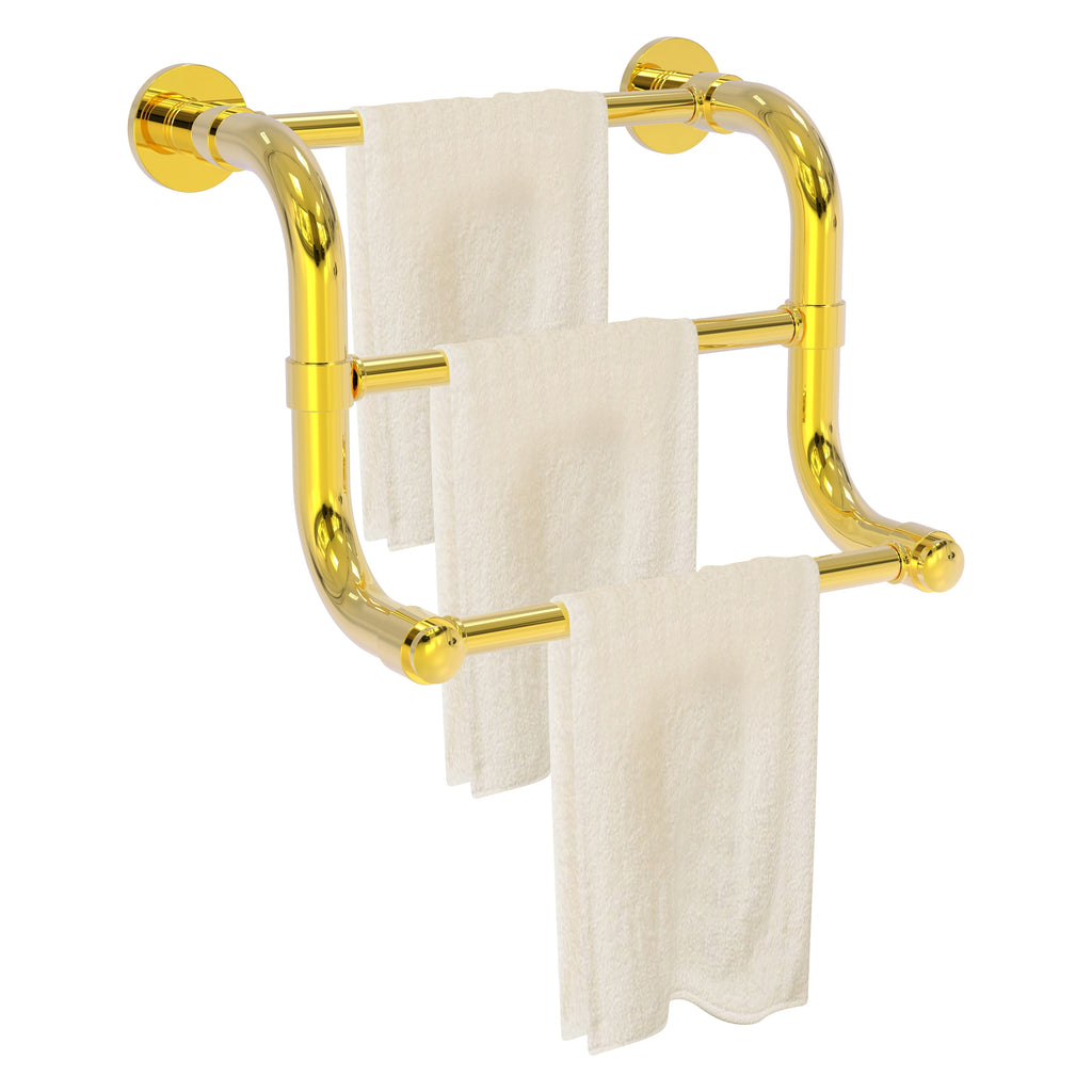 The 3 Bar Hand Towel Rack in the Remi Collection from Allied Brass will add style and function to your bathroom. Its curved shape and tiered design makes this accessory unique and trend setting at the same time. Made from high quality brass and finished in a lifetime designer finish, Its unique triple bar design will allow you to present hand towels to your guests in an elegant manner. Whether your bath decor features traditional Old World styling or a cleaner, more contemporary design, the Remi Collection has bath accessories to meet your design and decorating needs. All of the Remi Collection products come with a limited lifetime warranty.