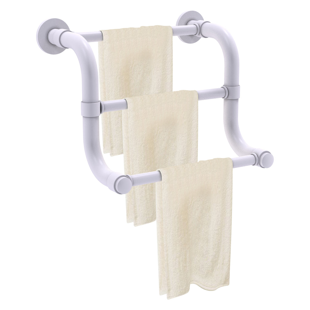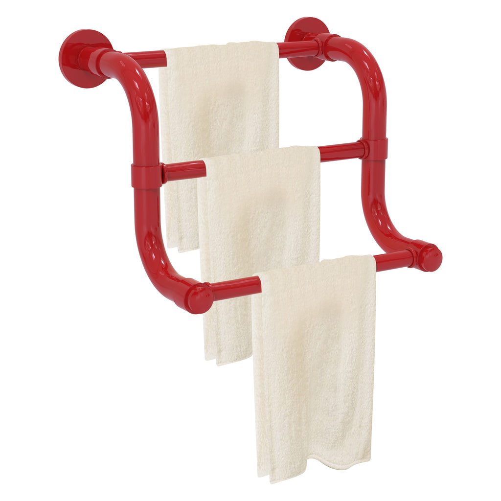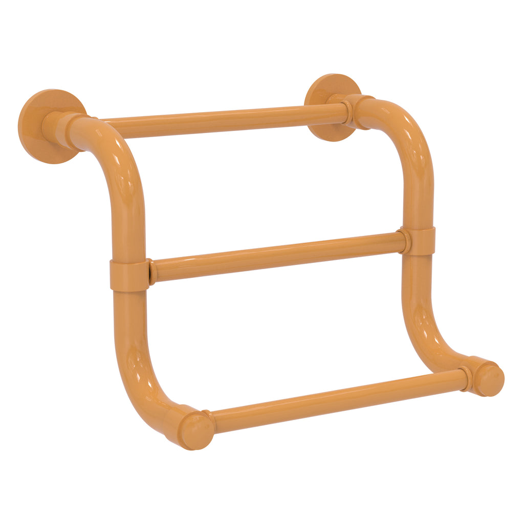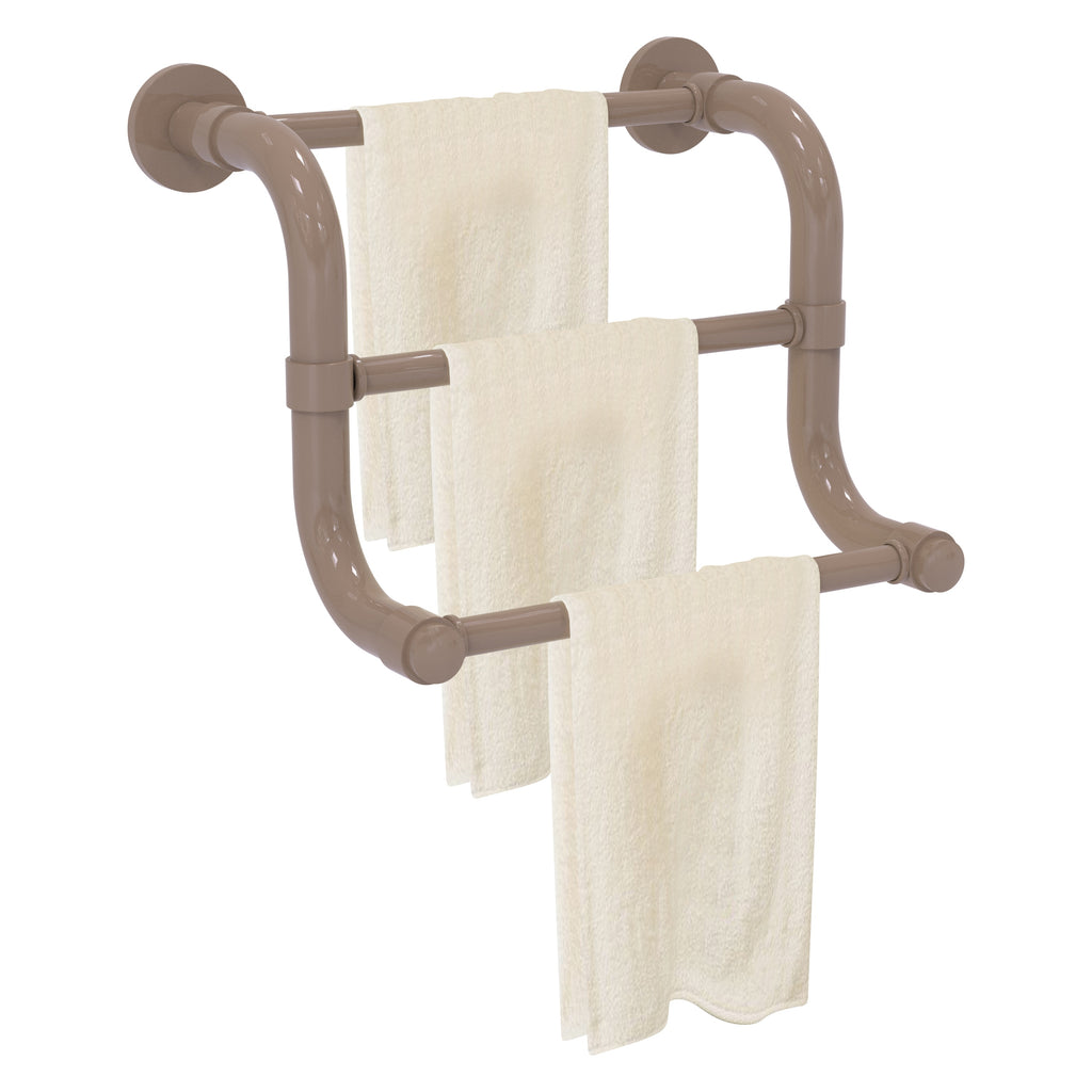 The 3 Bar Hand Towel Rack in the Remi Collection from Allied Brass will add style and function to your bathroom. Its curved shape and tiered design makes this accessory unique and trend setting at the same time. Made from high quality brass and finished in a lifetime designer finish, Its unique triple bar design will allow you to present hand towels to your guests in an elegant manner. Whether your bath decor features traditional Old World styling or a cleaner, more contemporary design, the Remi Collection has bath accessories to meet your design and decorating needs. All of the Remi Collection products come with a limited lifetime warranty.