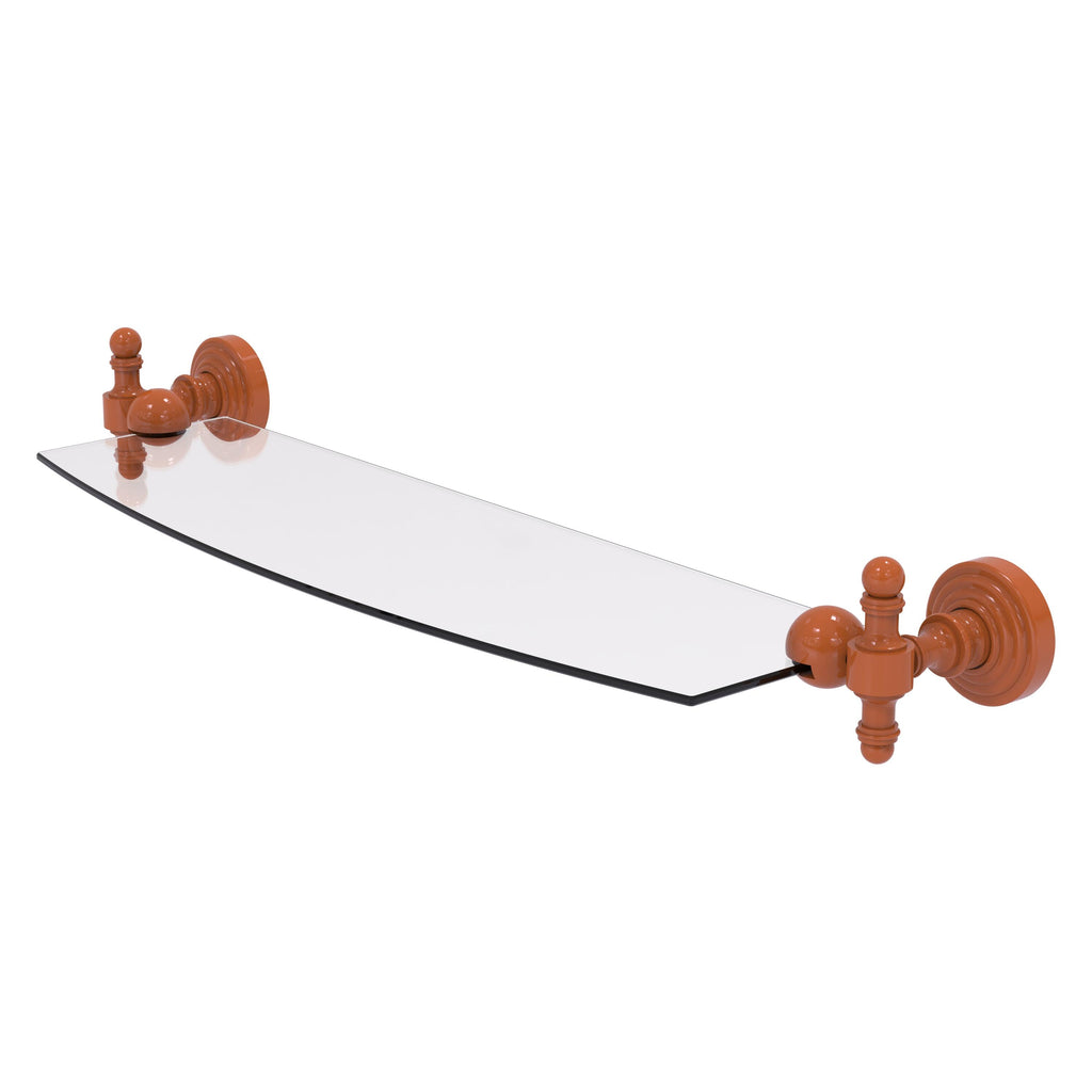Add a flare of style to your décor with this decorative glass shelf. Shelf can be used anywhere in the home for a great space to store your products. Glass is 1/4 Inch thick and all of the hardware is made of solid brass and finished with the highest quality materials to provide a lifetime of beauty.
