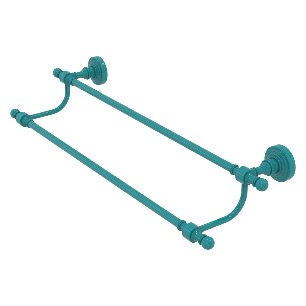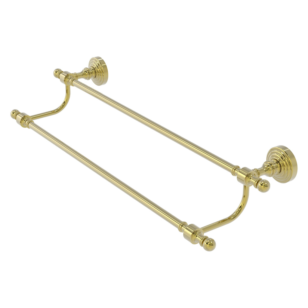 Add a stylish touch to your bathroom decor with this finely crafted double towel bar. This elegant bathroom accessory is created from the finest solid brass materials. High quality lifetime designer finishes are hand polished to perfection.