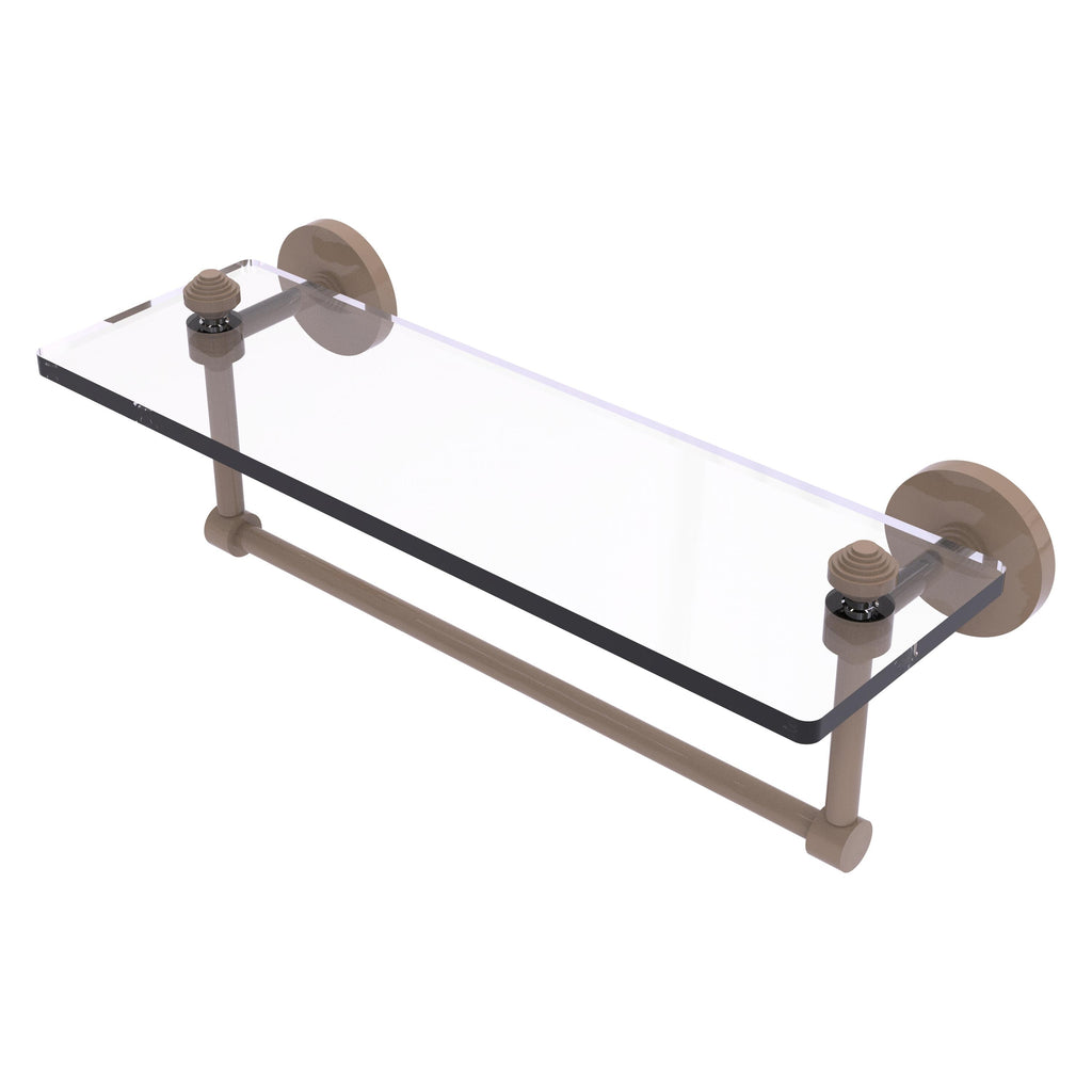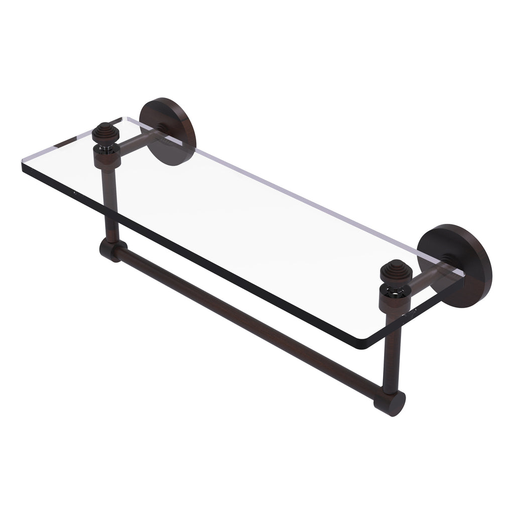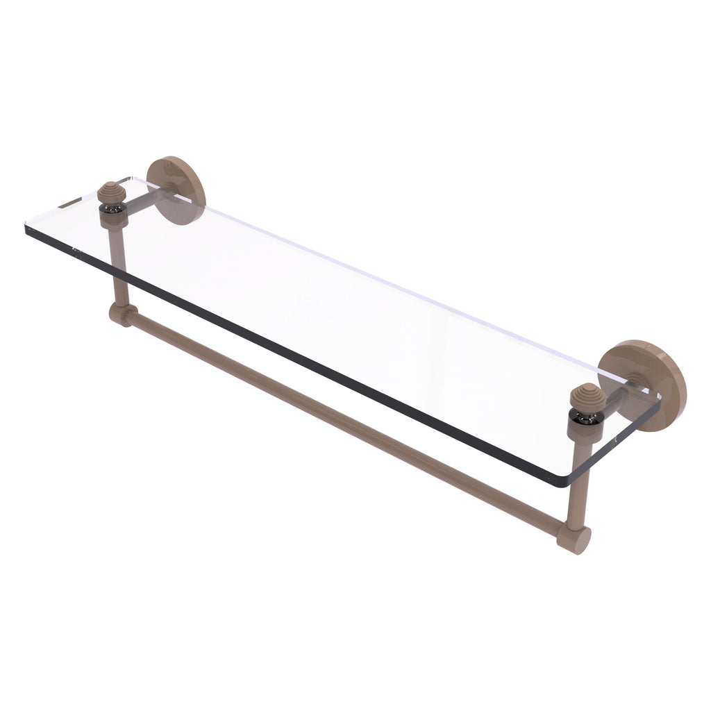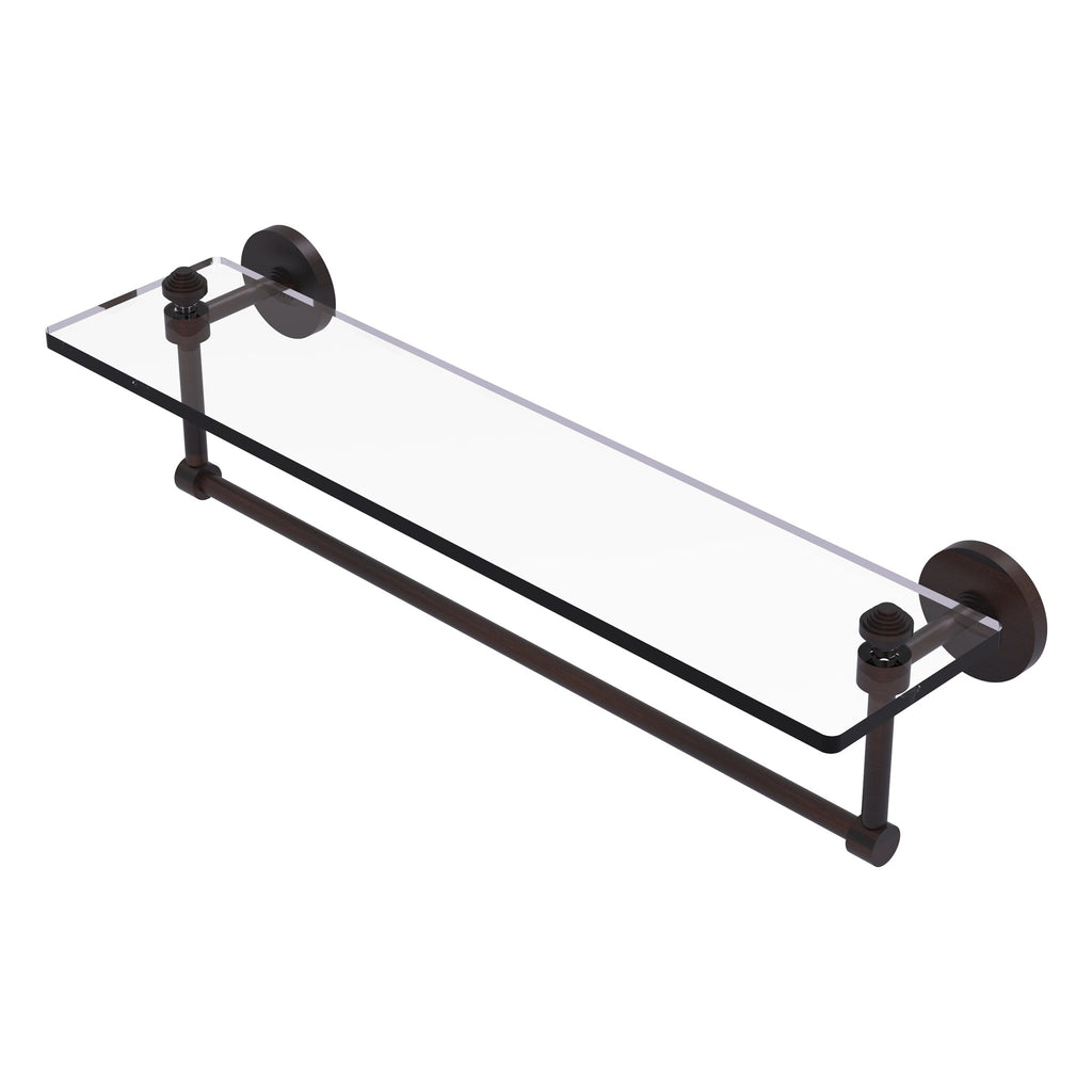 Add space and organization to your bathroom with this simple, contemporary style glass shelf. Featuring tempered, beveled-edged glass and solid brass hardware this shelf is crafted for durability, strength and style. One of the many coordinating accessories in the Allied Brass Southbeach Collection, this subtle glass shelf is the perfect complement to your bathroom décor.