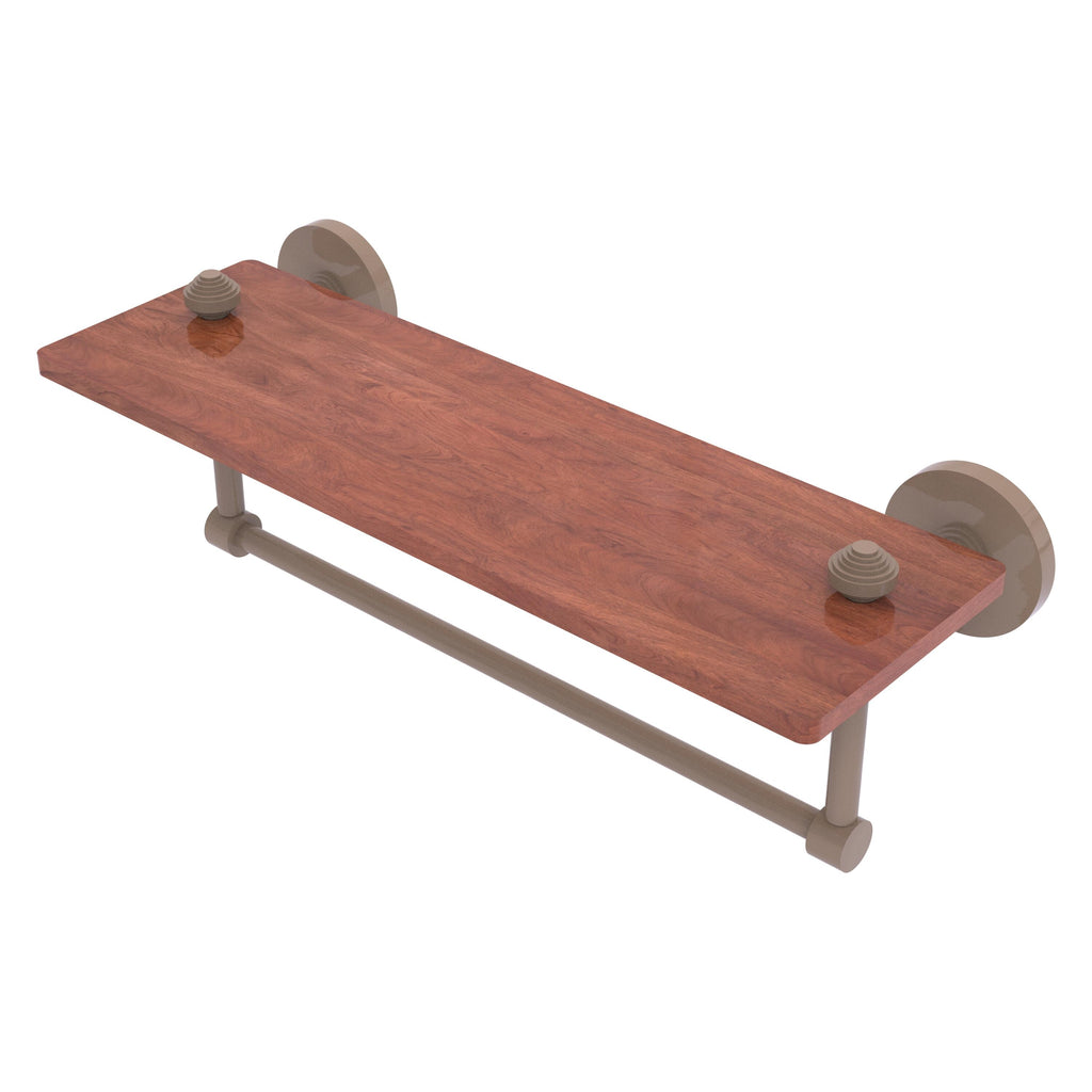 Add space and organization to your bathroom with this simple, traditional style IPE Ironwood Solid Wood shelf. Featuring premium IPE Ironwood and solid brass hardware this shelf is crafted for durability, strength and style. Solid brass integrated towel bar is a great place for your favorite towels. Ironwood is sanded to perfection and protected with a clear topcoat. One of the many coordinating accessories in the Allied Brass Collection, this subtle wood shelf is the perfect complement to your bathroom decor. IPE (pronounced “ee-pay”) is a large tropical hardwood tree that grows abundantly throughout Central and South America. IPE wood is prized for its durability, strength, and its natural resistance to decay and moisture. It is the wood used on the famous Atlantic City boardwalk!