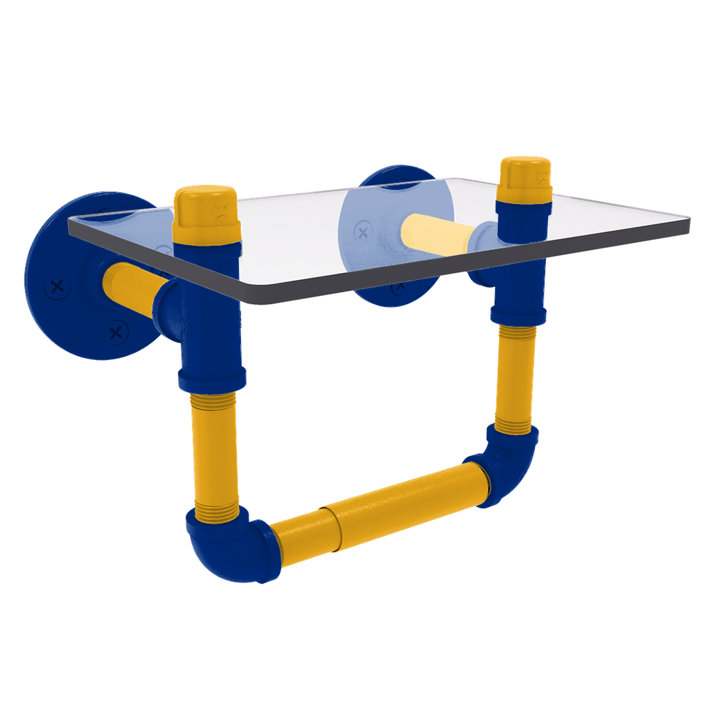 Enhance your bathroom decor while showcasing your unwavering support for your favorite Hockey team with the Slapshot Collection Toilet Tissue Holder with Glass Shelf, meticulously designed to reflect the vibrant primary color and secondary color hues of Buffalo. This essential accessory not only serves a practical purpose but also ignites a sense of pride every time you step into your bathroom. Made from robust powder-coated industrial pipe, this toilet tissue holder is built to last and resist corrosion, ensuring it remains a part of your home decor for years to come.