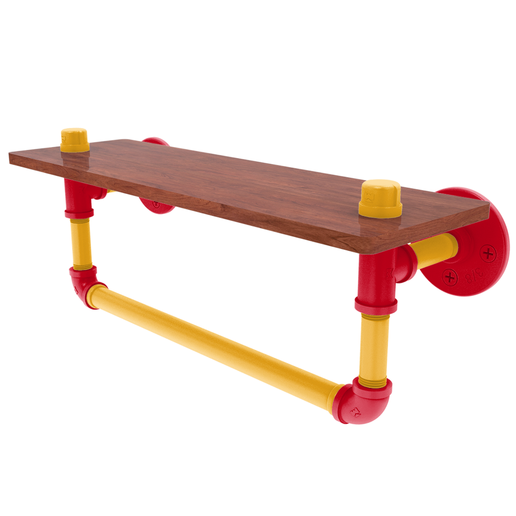 Bring the spirit of Calgary Hockey into your home with the sophisticated and functional "Slapshot Collection Ironwood Shelf with Towel Bar". Perfect for any Hockey enthusiast, this shelf not only serves as a practical storage solution but also as a vibrant display of your team loyalty with its primary color and secondary color hues, matching your favorite team's colors. Crafted with care, it features powder-coated industrial pipe that ensures durability and longevity, making it a staple your home for years.