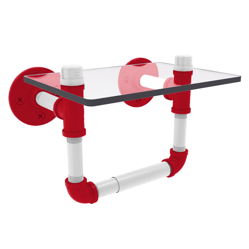 Enhance your bathroom decor while showcasing your unwavering support for your favorite Hockey team with the Slapshot Collection Toilet Tissue Holder with Glass Shelf, meticulously designed to reflect the vibrant primary color and secondary color hues of Detroit. This essential accessory not only serves a practical purpose but also ignites a sense of pride every time you step into your bathroom. Made from robust powder-coated industrial pipe, this toilet tissue holder is built to last and resist corrosion, ensuring it remains a part of your home decor for years to come.