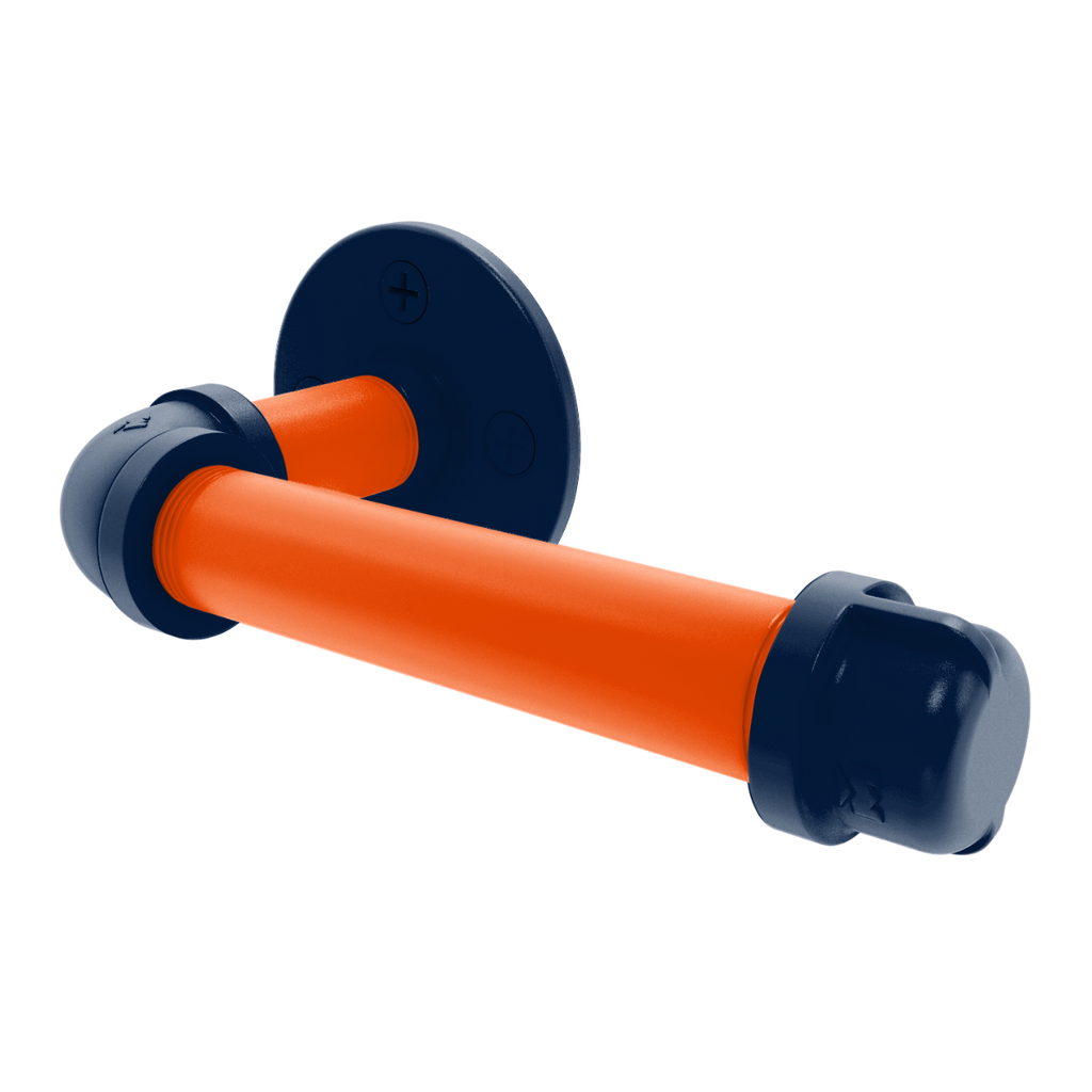 Showcase in your unwavering Edmonton Hockey pride with our Slapshot Collection European Style Toilet Tissue Holder. This unique bathroom accessory not only provides convenient storage and access for your toilet paper but also serves as a vibrant declaration of your team spirit. The striking primary color and secondary color finish not only highlights your allegiance to Edmonton Hockey but also adds a pop of color that enlivens your bathroom's aesthetics. Crafted meticulously from powder-coated industrial pipe, this holder guarantees both exceptional durability and a sleek, stylish look.