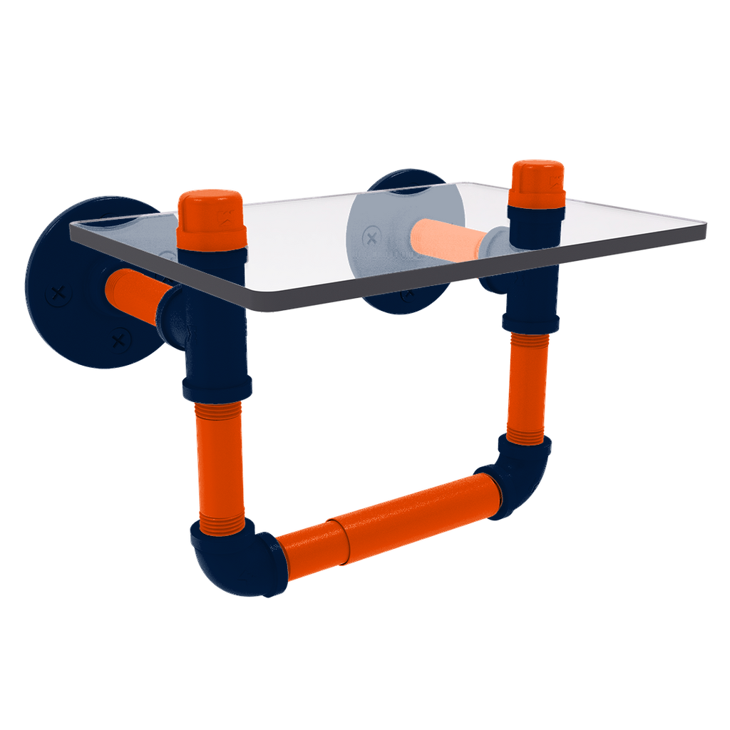 Enhance your bathroom decor while showcasing your unwavering support for your favorite Hockey team with the Slapshot Collection Toilet Tissue Holder with Glass Shelf, meticulously designed to reflect the vibrant primary color and secondary color hues of Edmonton. This essential accessory not only serves a practical purpose but also ignites a sense of pride every time you step into your bathroom. Made from robust powder-coated industrial pipe, this toilet tissue holder is built to last and resist corrosion, ensuring it remains a part of your home decor for years to come.