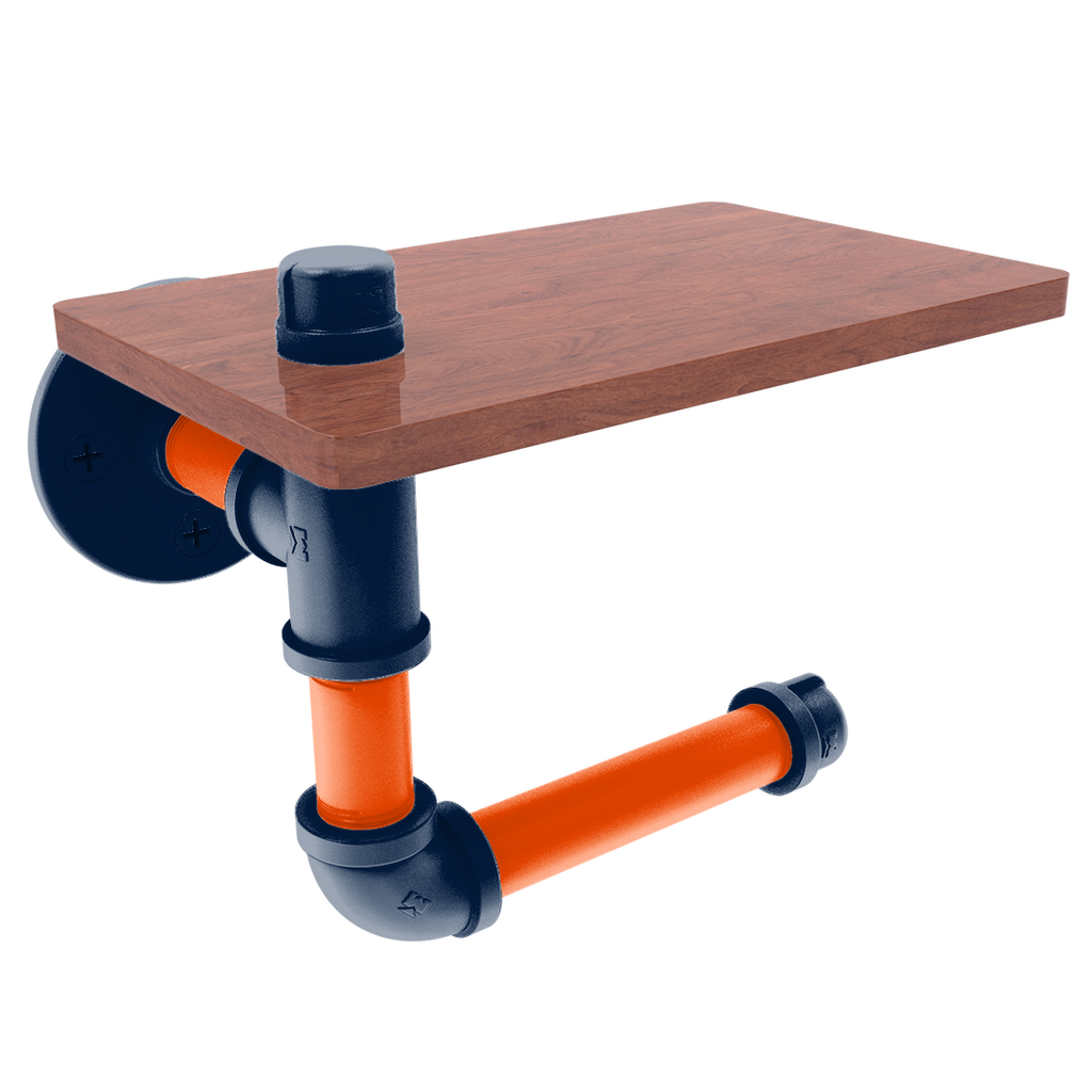 Show your Edmonton Hockey pride with this elegantly crafted toilet paper holder from our Slapshot Collection. Designed for the true fan, it features robust powder-coated industrial pipe construction, ensuring durability and strength. The vibrant primary color and secondary color finish not only represents your team but also brings a spirited vibe to your bathroom decor, making it more than just a functional item—it's a statement of loyalty and passion.