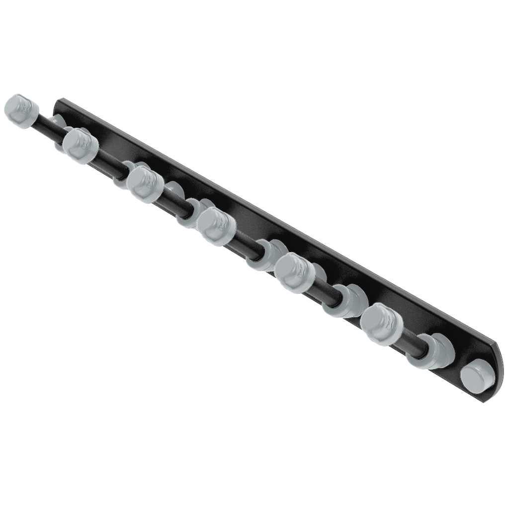 - Mounts firmly on any wall with a concealed screw mounting system, preserving the clean lines and aesthetic of the rack.