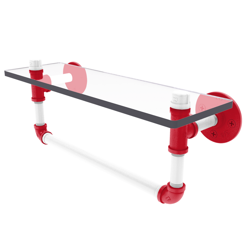 Enhance your bathroom while showing off your New Jersey pride with our exclusive Slapshot Collection Glass Shelf with Towel Bar. Sporting the vibrant primary color and secondary color, this piece not only serves as a functional addition to your home but also as a bold statement of your love for Hockey. Crafted with high-quality powder-coated industrial pipe and durable glass, this shelf and towel bar combination brings both style and practicality to your bathroom space.