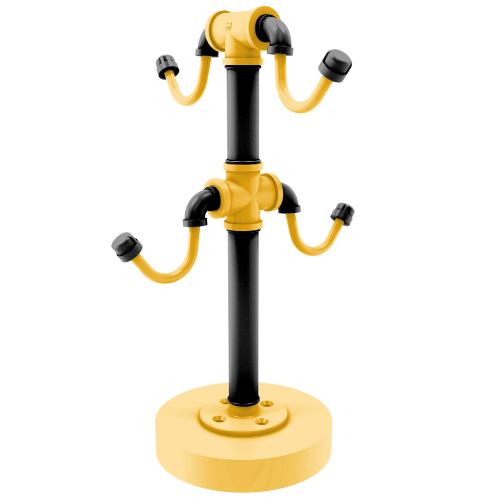Start your day immersed Pittsburgh spirit with the Slapshot Collection Countertop Coffee Mug Holder, a must-have for any die-hard Hockey fan! This meticulously crafted holder is not just a functional piece but a vibrant showcase of your team loyalty, featuring the iconic primary color and secondary color colors. Made from robust powder-coated industrial pipe, it ensures your coffee mugs are stored safely and stylishly, echoing the strength and endurance of your favorite team.