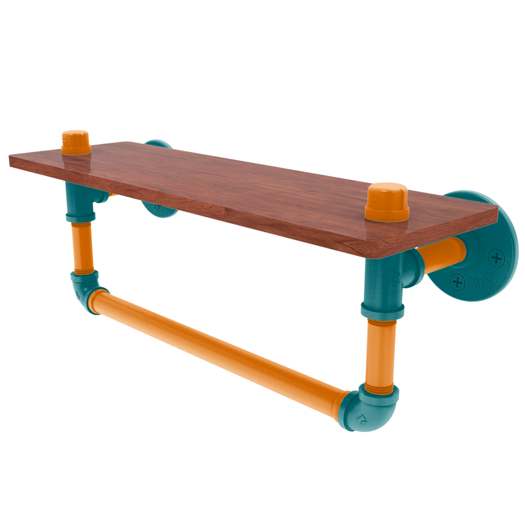 Bring the spirit of San Jose Hockey into your home with the sophisticated and functional "Slapshot Collection Ironwood Shelf with Towel Bar". Perfect for any Hockey enthusiast, this shelf not only serves as a practical storage solution but also as a vibrant display of your team loyalty with its primary color and secondary color hues, matching your favorite team's colors. Crafted with care, it features powder-coated industrial pipe that ensures durability and longevity, making it a staple your home for years.