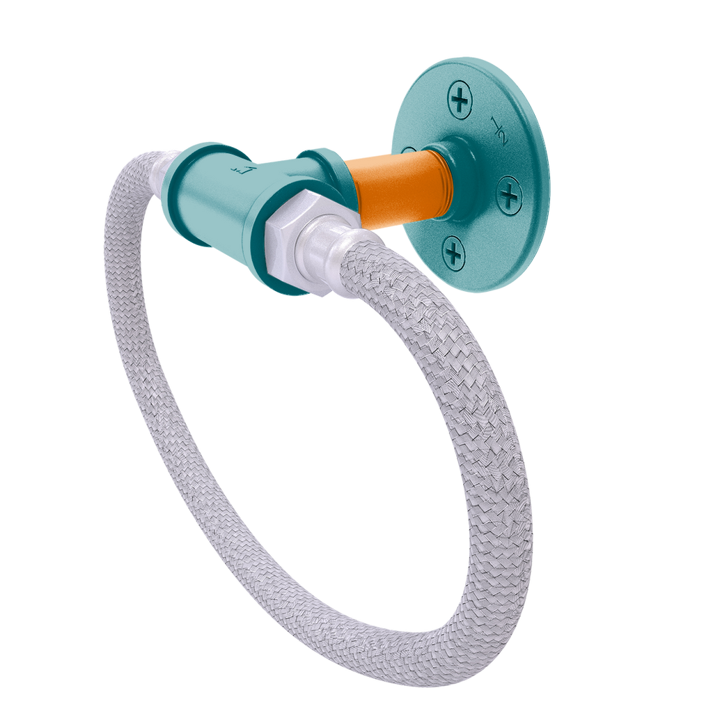 Express your unwavering support for the San Jose Hockey team with our exclusively designed Slapshot Ring with Stainless Steel Braided Ring, adorned the vibrant primary color and secondary color team colors. This isn’t just any bathroom accessory; it’s a testament to your dedication and a way to bring a piece of the game into your home. Crafted from robust powder-coated industrial pipe, this towel ring ensures a blend of exceptional durability and unique aesthetic appeal, perfect for any true fan’s residence.
