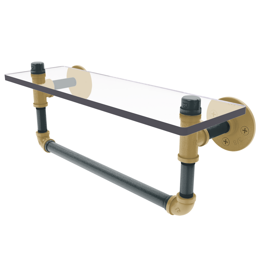 Enhance your bathroom while showing off your Vegas pride with our exclusive Slapshot Collection Glass Shelf with Towel Bar. Sporting the vibrant primary color and secondary color, this piece not only serves as a functional addition to your home but also as a bold statement of your love for Hockey. Crafted with high-quality powder-coated industrial pipe and durable glass, this shelf and towel bar combination brings both style and practicality to your bathroom space.