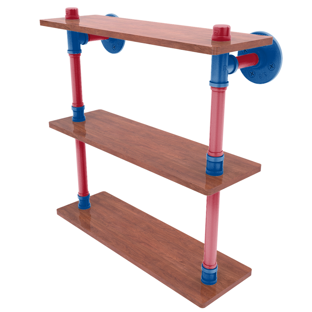 Enhance the ambiance of your home while proudly displaying your Winnipeg spirit with the "Slapshot Collection Ironwood Triple Shelf". Meticulously crafted using premium powder-coated industrial pipe, this shelving unit is designed not just for superior functionality but also to highlight your devotion to Hockey. The bold primary color and secondary color hues are specifically chosen to mirror the colors of your favorite team, transforming any room into a vibrant showcase of team loyalty.