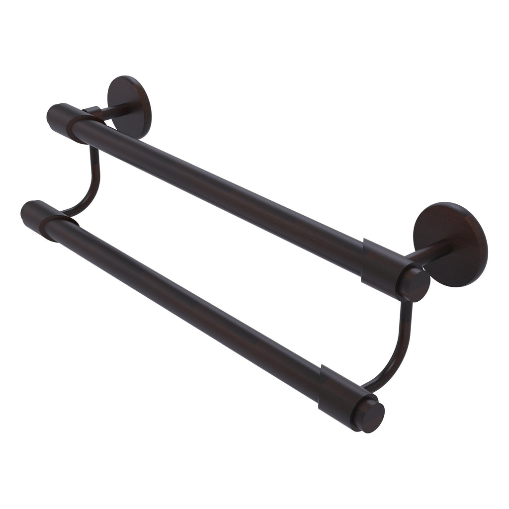 Add a stylish touch to your bathroom decor with this finely crafted double towel bar. This elegant bathroom accessory is created from the finest solid brass materials. High quality lifetime designer finishes are hand polished to perfection.