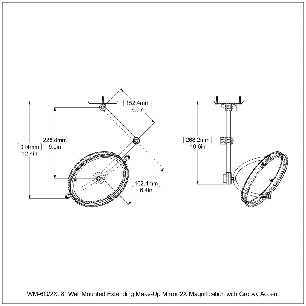 8 Inch Wall Mounted Extending Make-Up Mirror with Grooved Accents