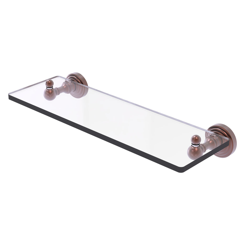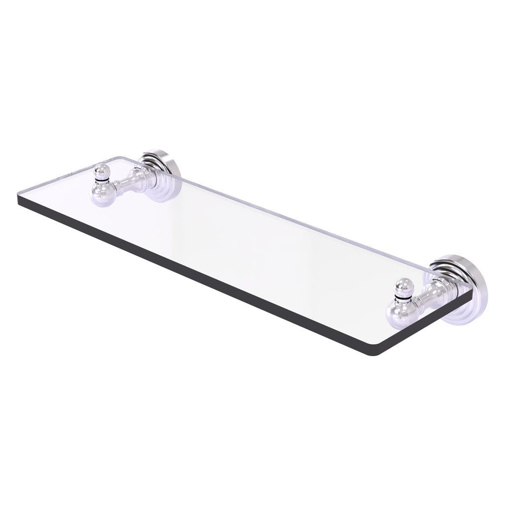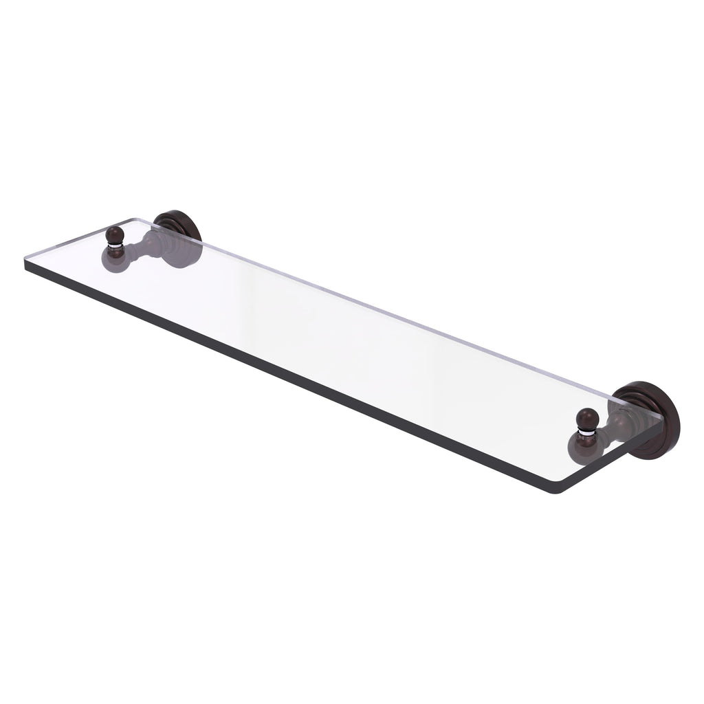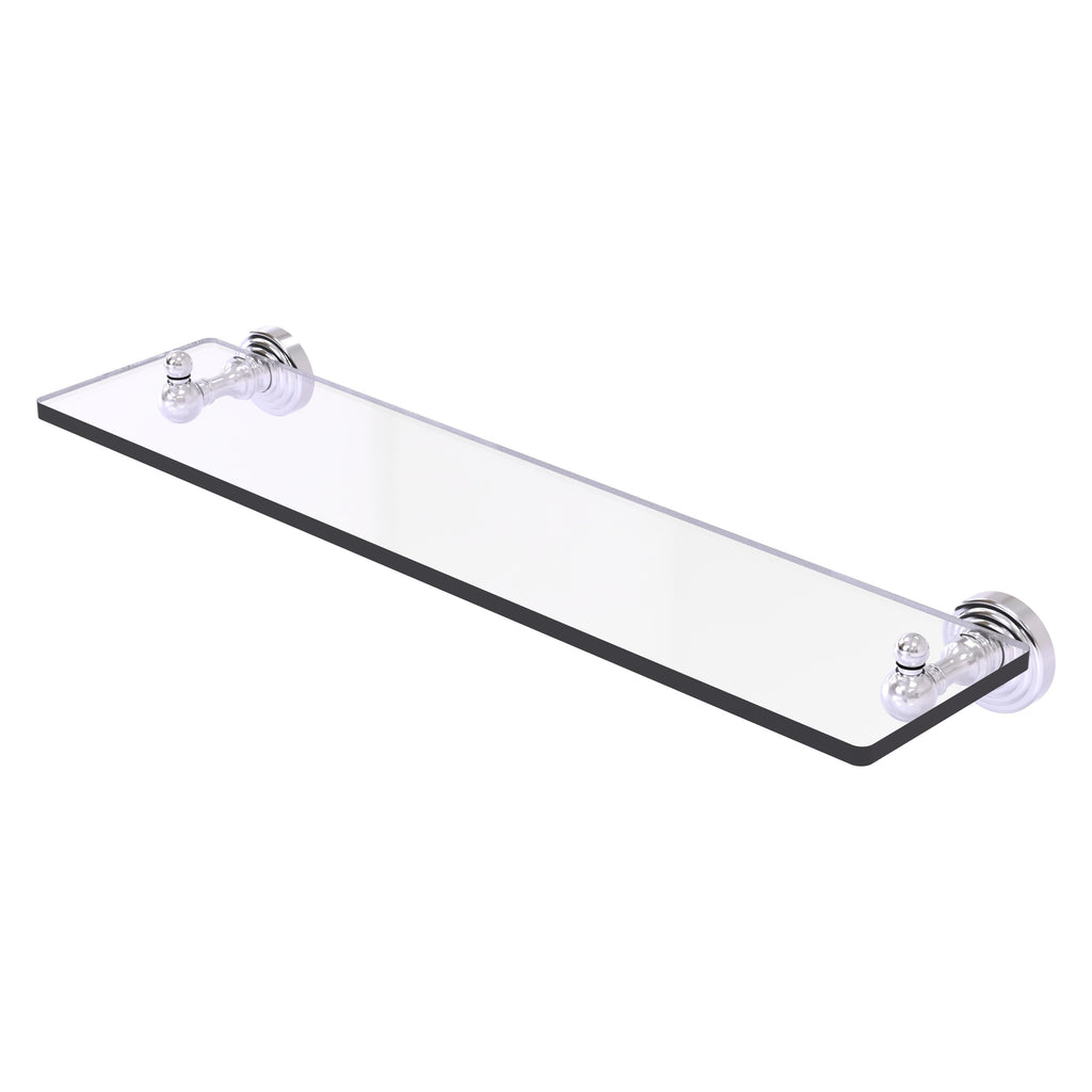 Add space and organization to your bathroom with this simple, traditional style glass shelf. Featuring tempered, beveled-edged glass and solid brass hardware this shelf is crafted for durability, strength and style. One of the many coordinating accessories in the Allied Brass Waverly Place Collection, this subtle glass shelf is the perfect complement to your bathroom decor.