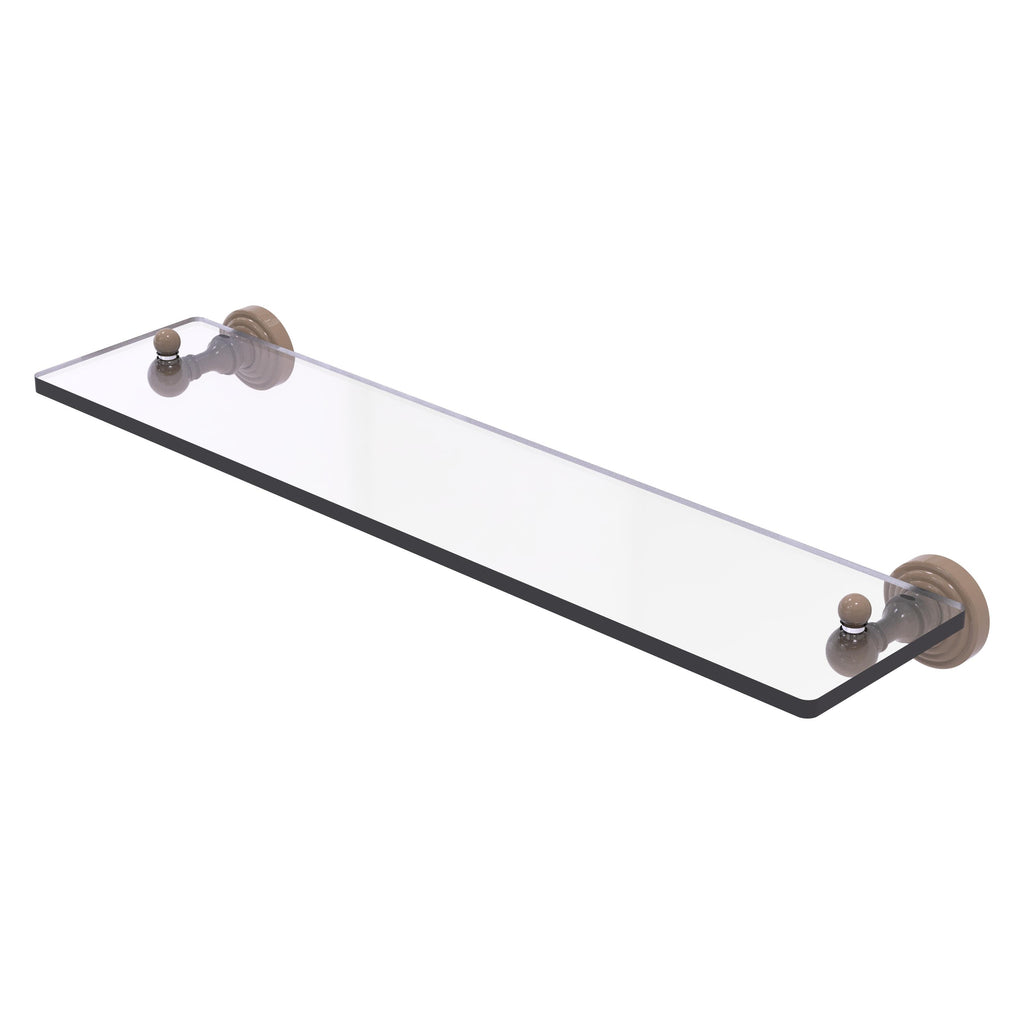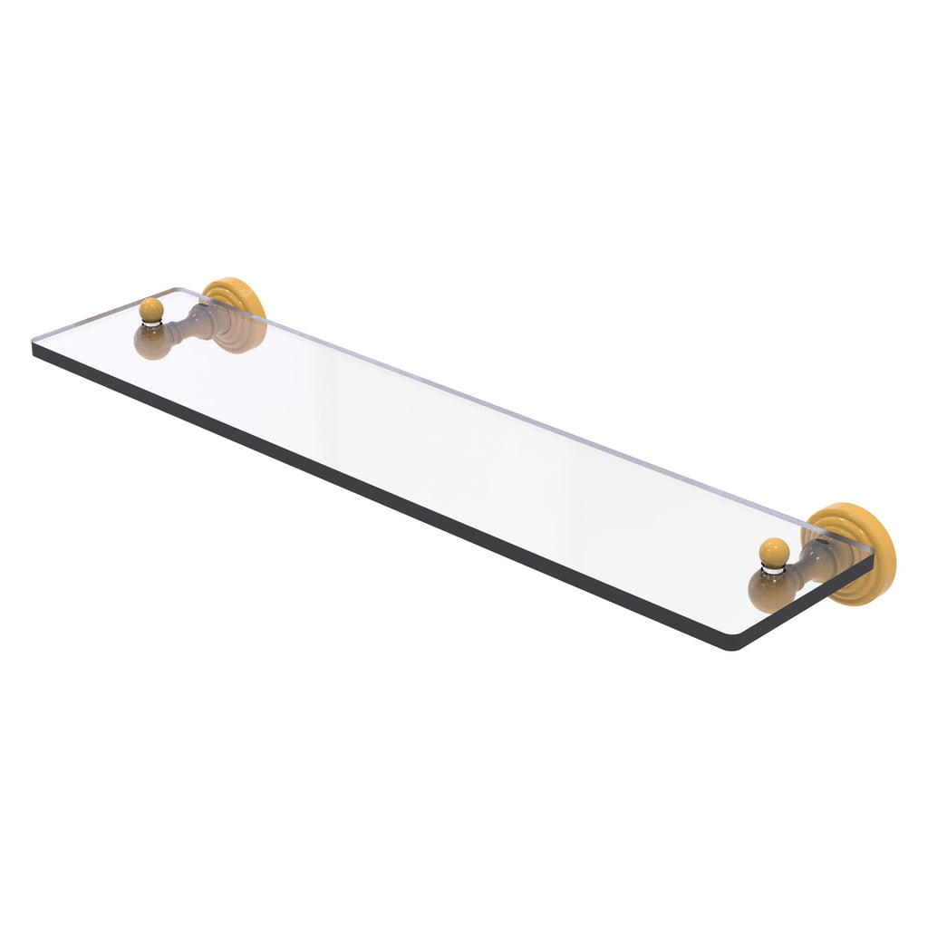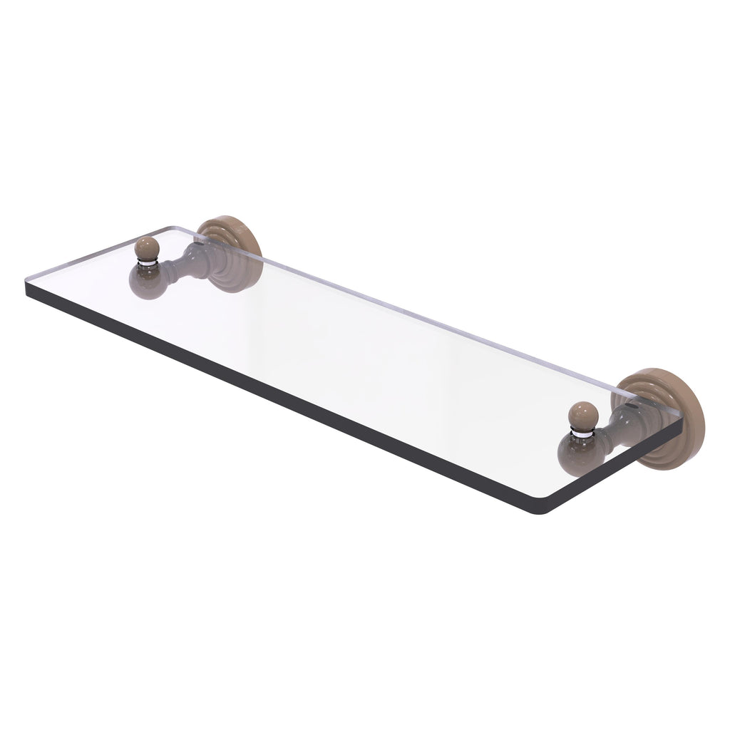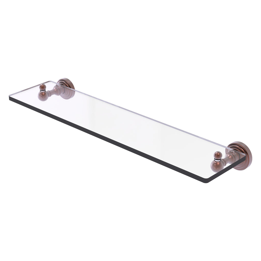 Add space and organization to your bathroom with this simple, traditional style glass shelf. Featuring tempered, beveled-edged glass and solid brass hardware this shelf is crafted for durability, strength and style. One of the many coordinating accessories in the Allied Brass Waverly Place Collection, this subtle glass shelf is the perfect complement to your bathroom decor.