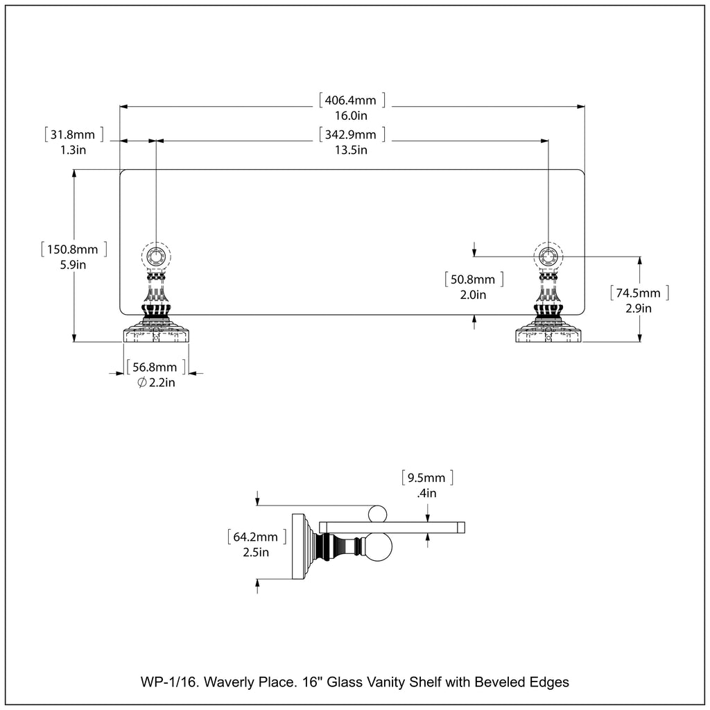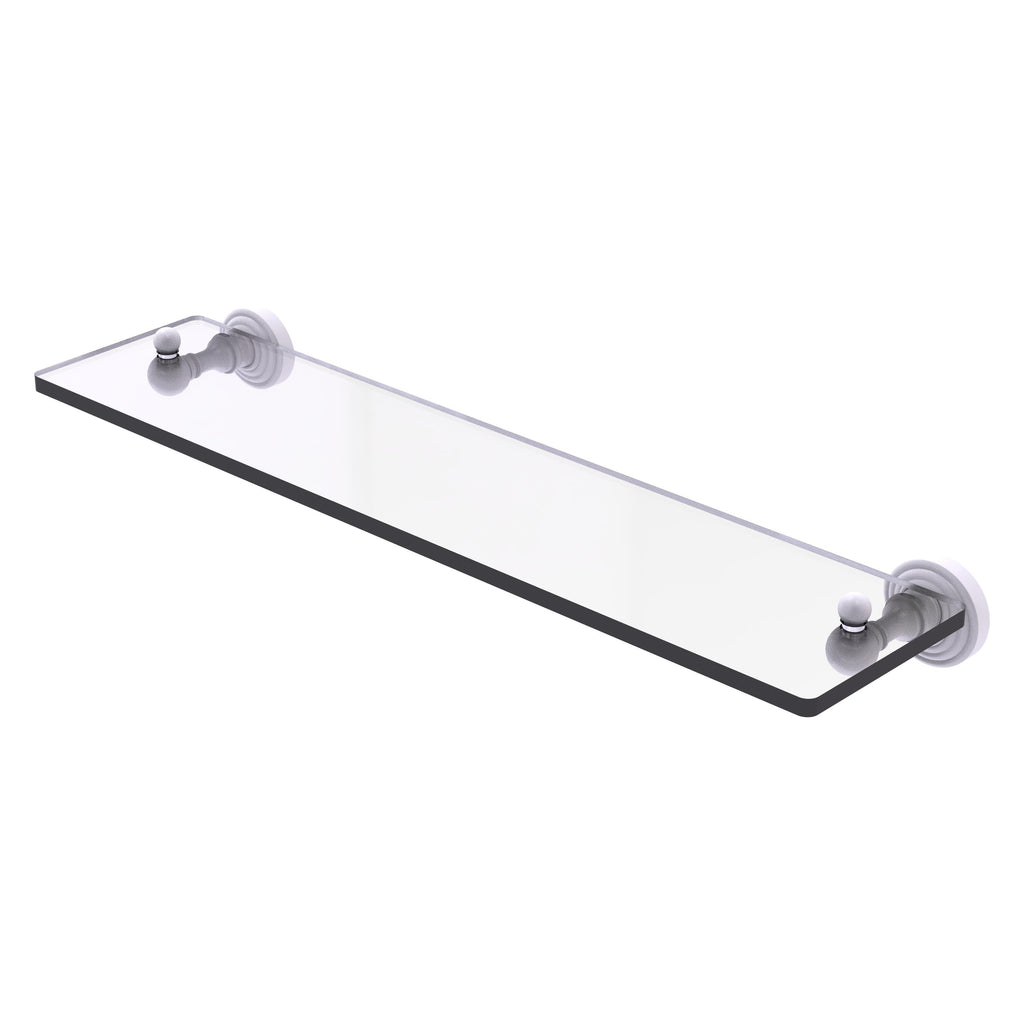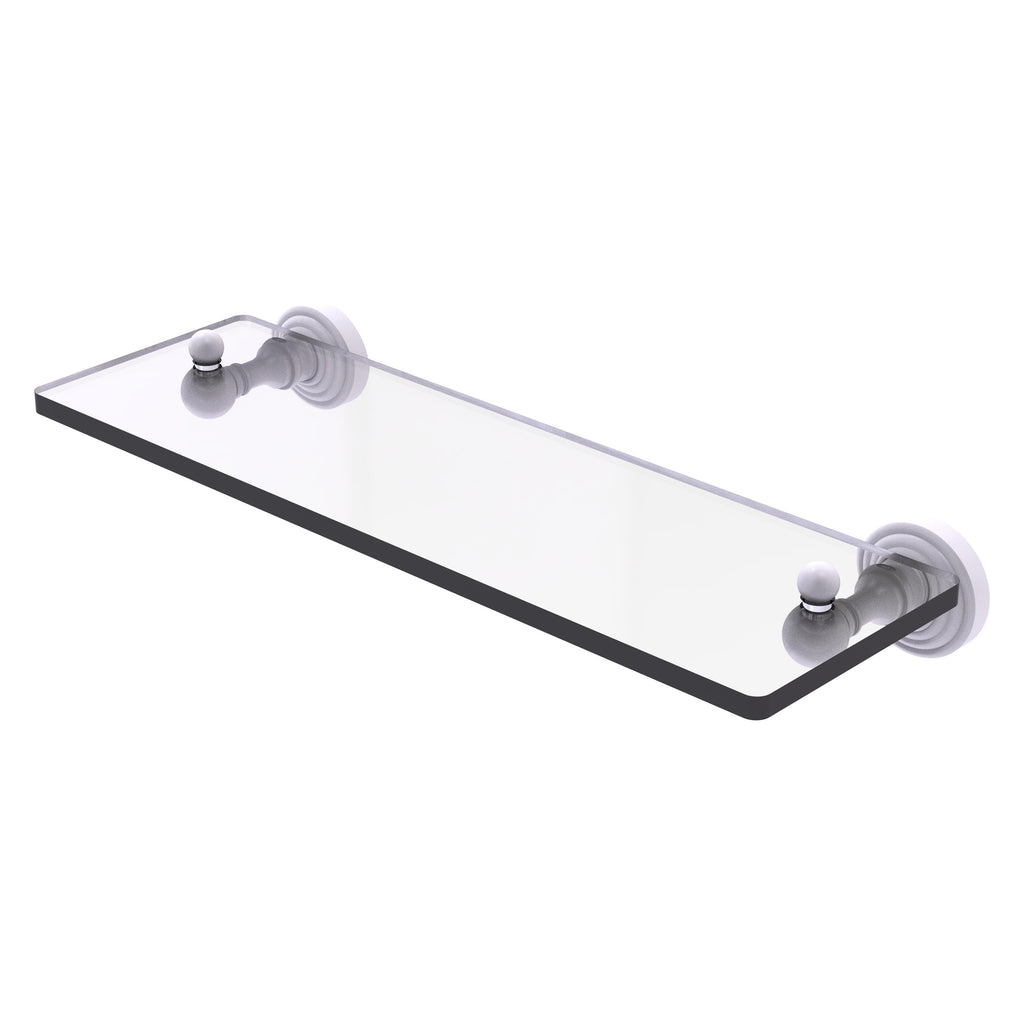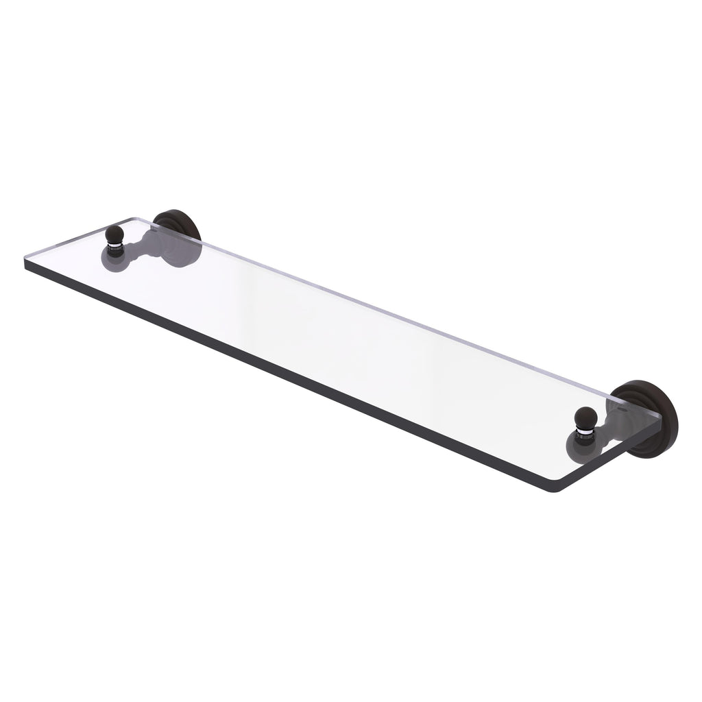 Add space and organization to your bathroom with this simple, traditional style glass shelf. Featuring tempered, beveled-edged glass and solid brass hardware this shelf is crafted for durability, strength and style. One of the many coordinating accessories in the Allied Brass Waverly Place Collection, this subtle glass shelf is the perfect complement to your bathroom decor.