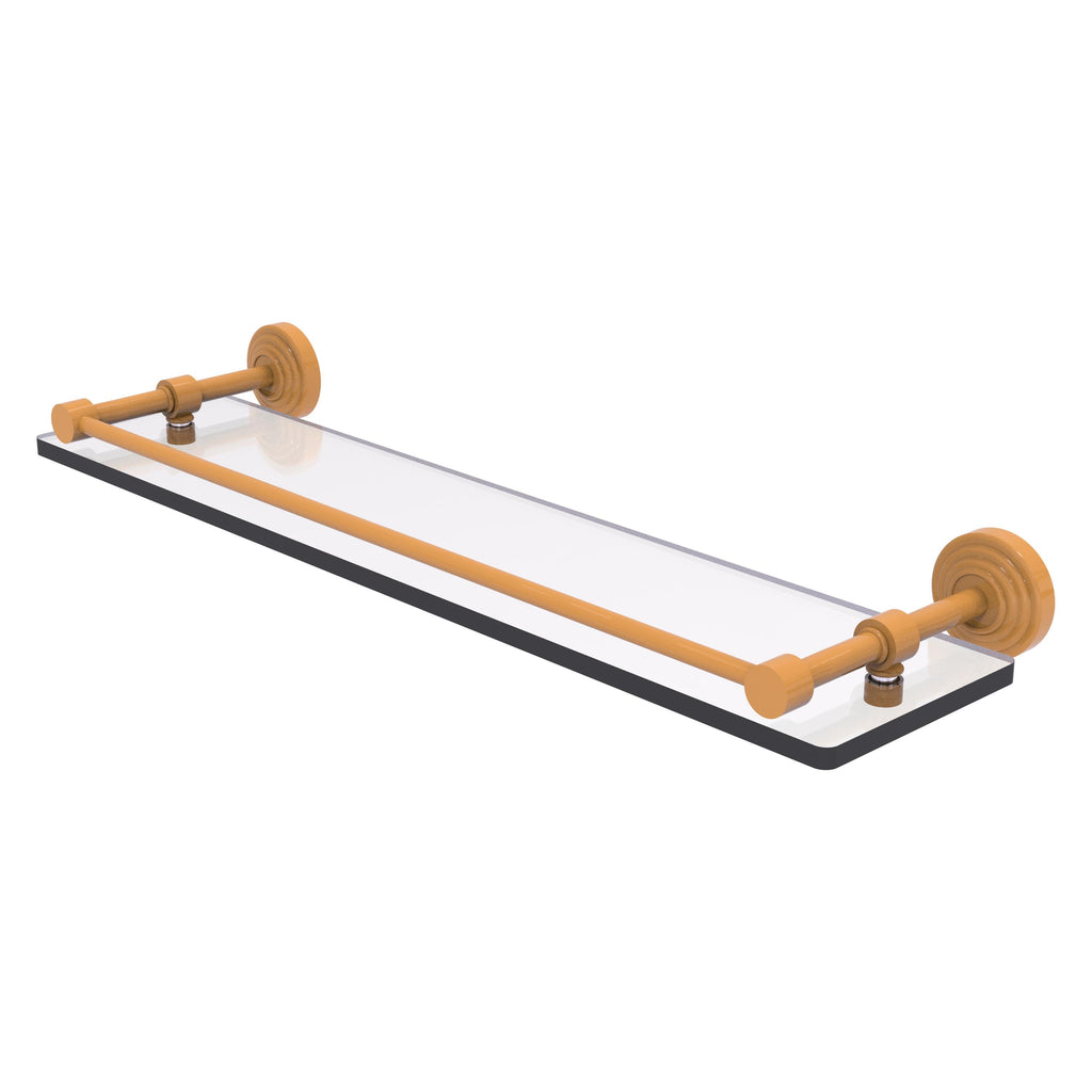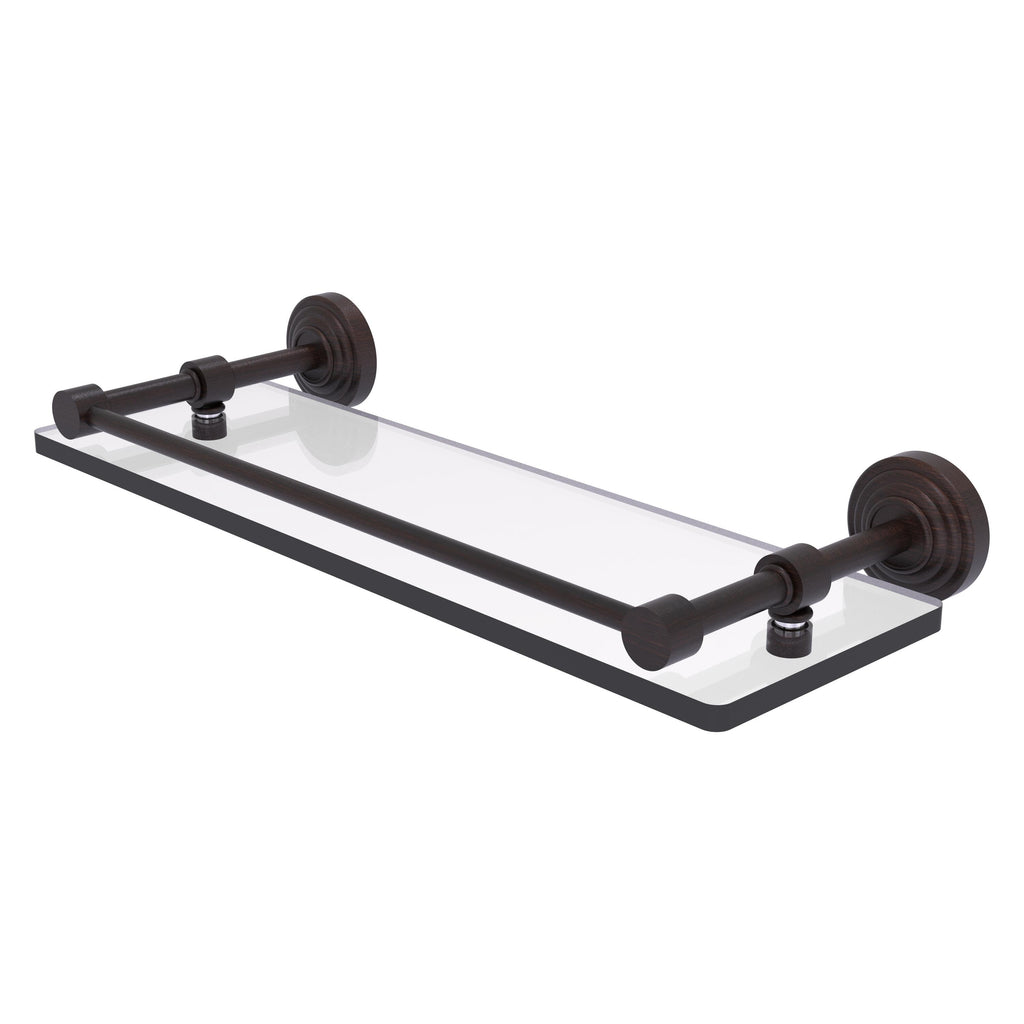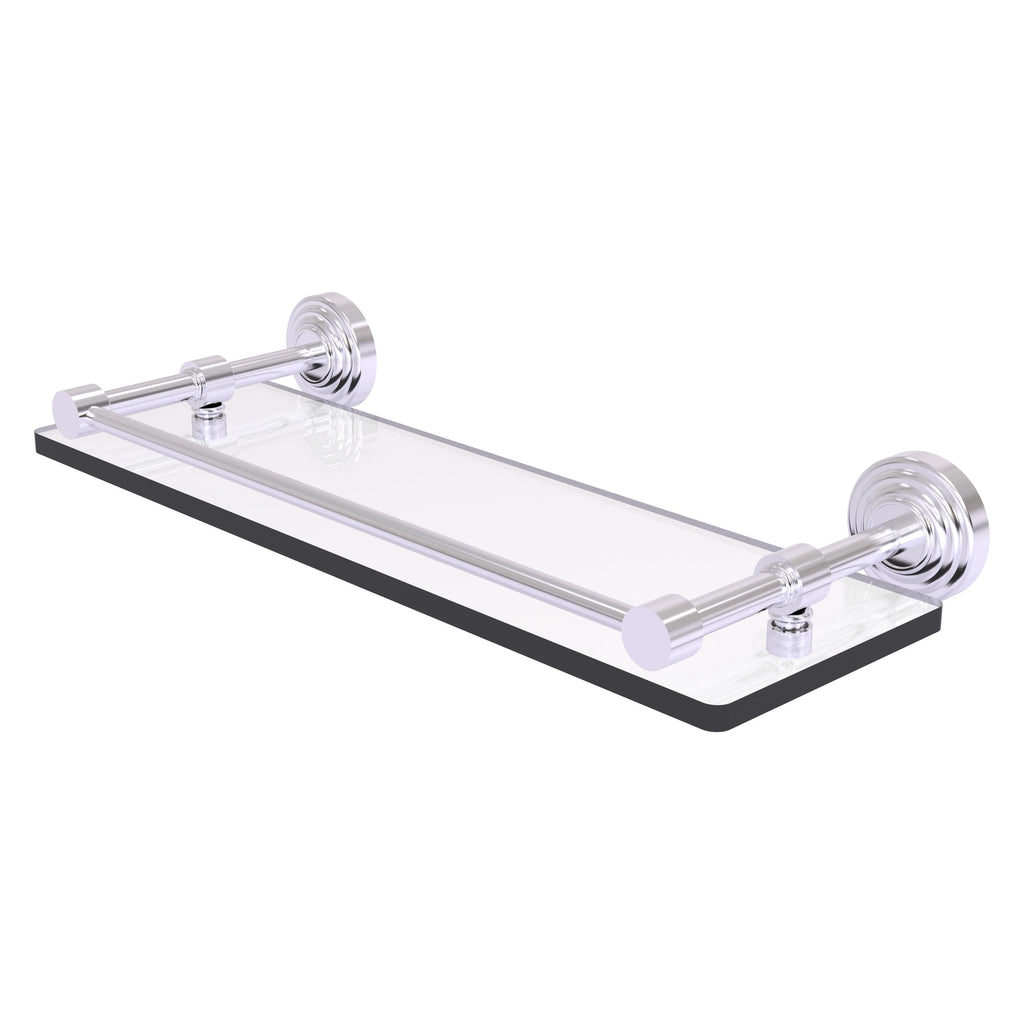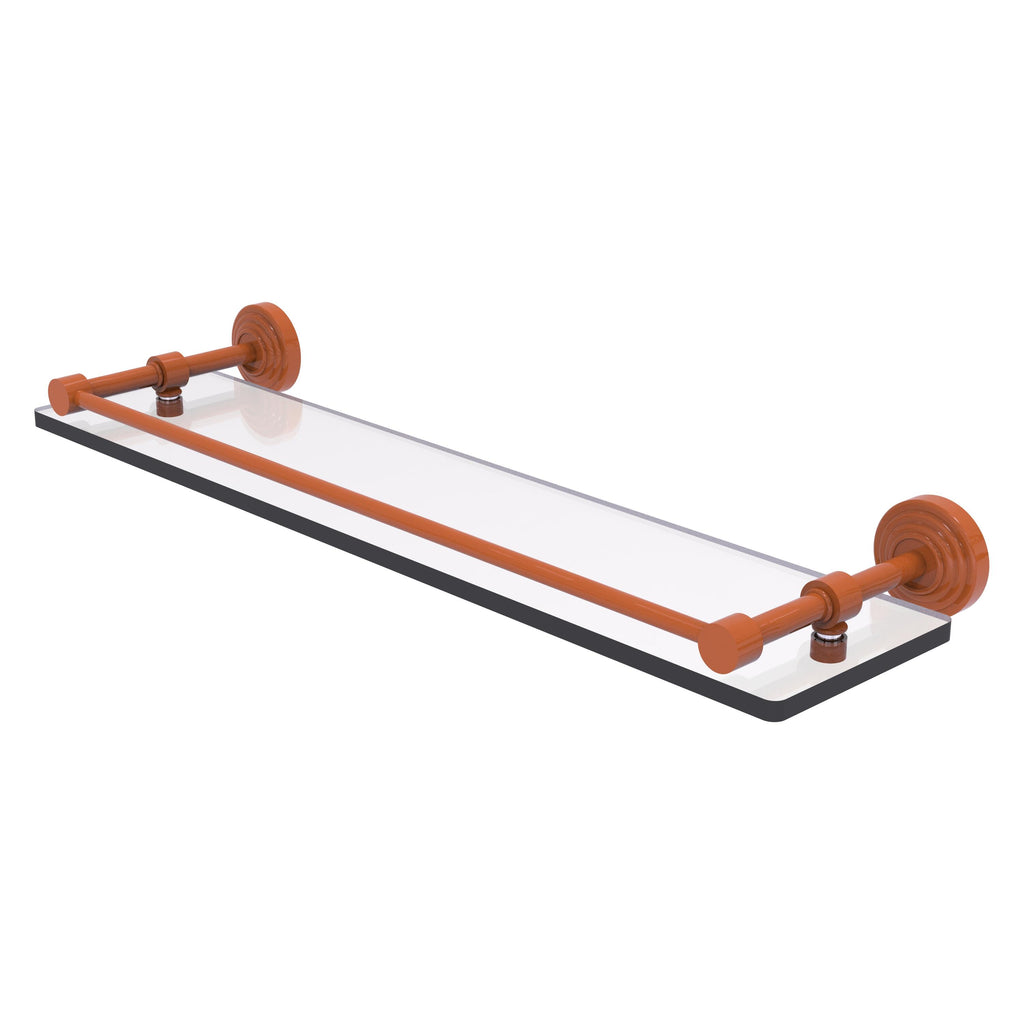 Add a flare of style to your décor with this decorative glass shelf. Shelf can be used anywhere in the home for a great space to store your products. Gallery rail will keep your items secure. Tempered glass is 3/8 Inches thick and all of the hardware is made of solid brass and finished with the highest quality materials to provide a lifetime of beauty.