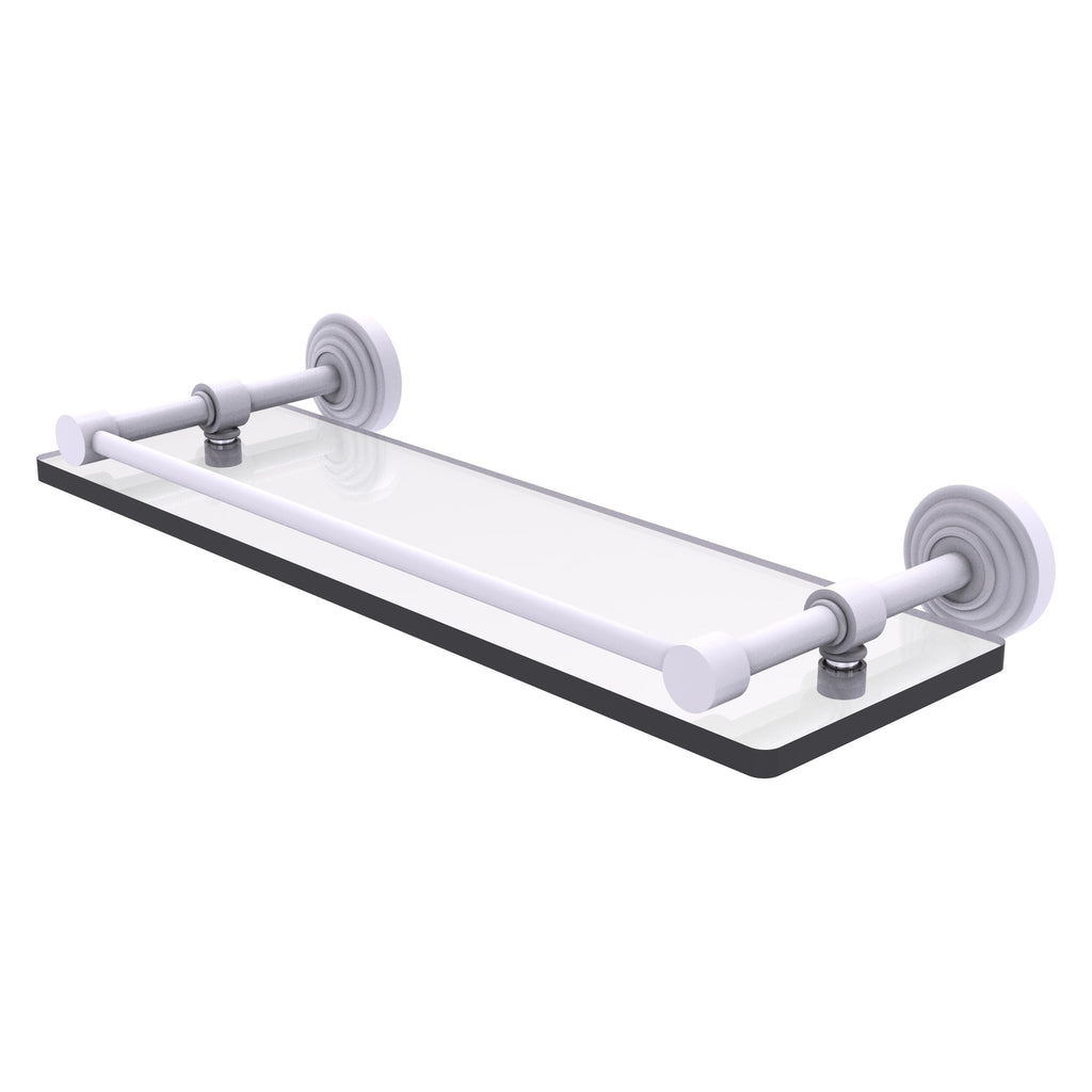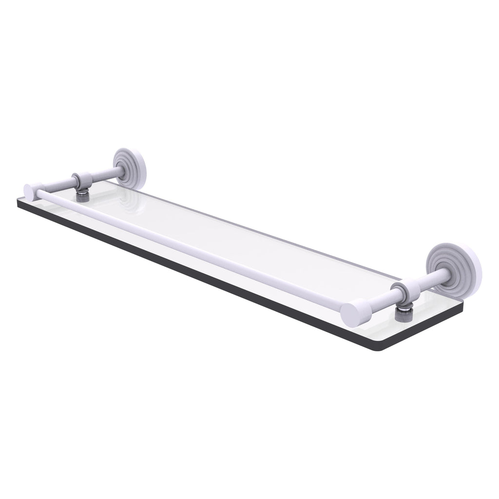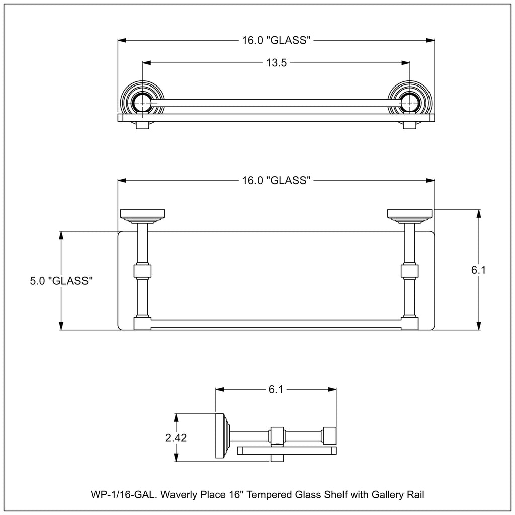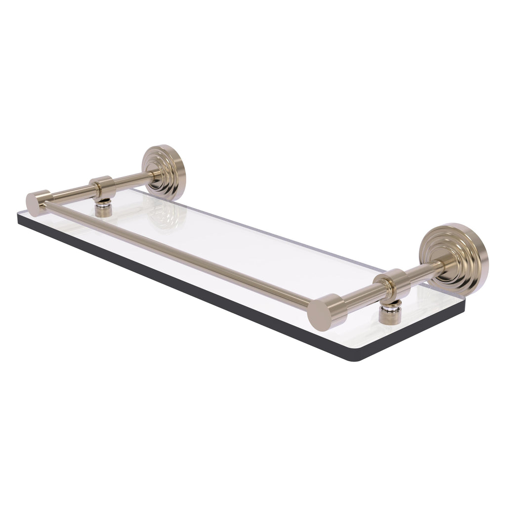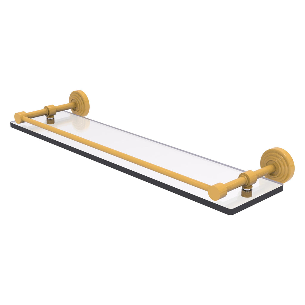 Add a flare of style to your décor with this decorative glass shelf. Shelf can be used anywhere in the home for a great space to store your products. Gallery rail will keep your items secure. Tempered glass is 3/8 Inches thick and all of the hardware is made of solid brass and finished with the highest quality materials to provide a lifetime of beauty.