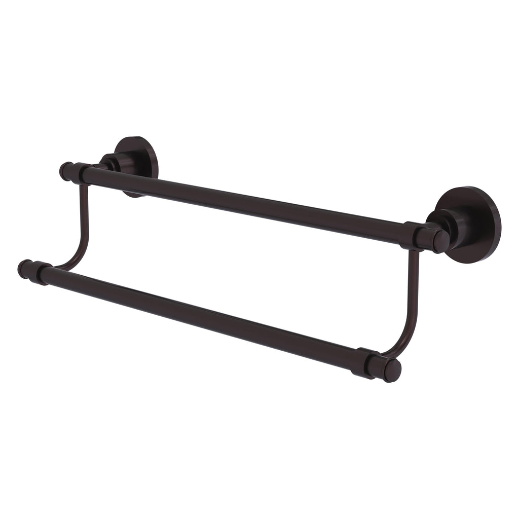 Add a stylish touch to your bathroom decor with this finely crafted double towel bar. This elegant bathroom accessory is created from the finest solid brass materials. High quality lifetime designer finishes are hand polished to perfection.